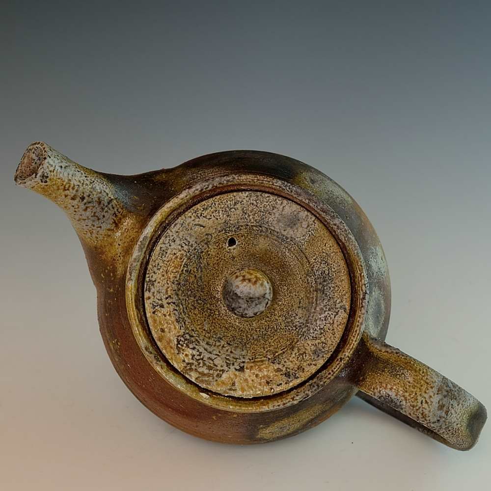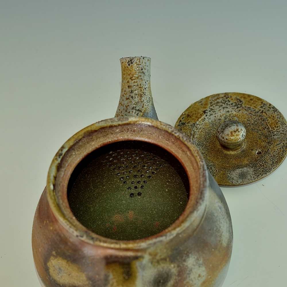 Back Handle Tea Pot. Hand crafted and signed by ceramic artist, Bifu Kimura. Wheel formed and fired with red pine wood in the fire-clay brick kiln for 14 days. Unglazed, unpainted and all natural colors. Tea Pot: 20cm long, 12cm diameter, 11cm high, Holds 500ml Microwave- and dishwasher-safe The colors and the patterns may vary as each item is a unique piece of art. If you would like more details about this item, please contact us.