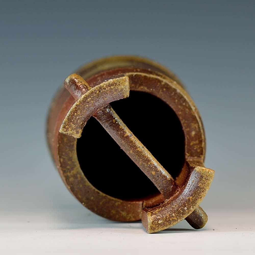 Bucket Shape Vase. Hand crafted and signed by ceramic artist, Bifu Kimura. Wheel formed and fired with red pine wood in the fire-clay brick kiln for 14 days. Unglazed, unpainted and all natural colors.Flower Vase: 7cm diameter, 19cm high,The colors and the patterns may vary as each item is a unique piece of art. If you would like more details about this item, please contact us.
