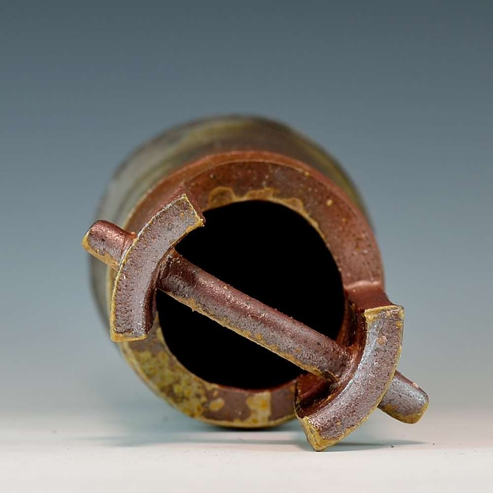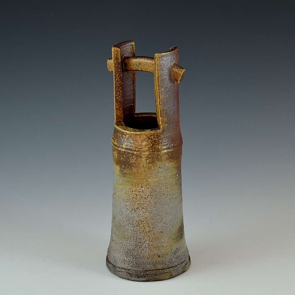 Bucket Shape Vase. Hand crafted and signed by ceramic artist, Bifu Kimura. Wheel formed and fired with red pine wood in the fire-clay brick kiln for 14 days. Unglazed, unpainted and all natural colors.Flower Vase: 7cm diameter, 19cm high,The colors and the patterns may vary as each item is a unique piece of art. If you would like more details about this item, please contact us.