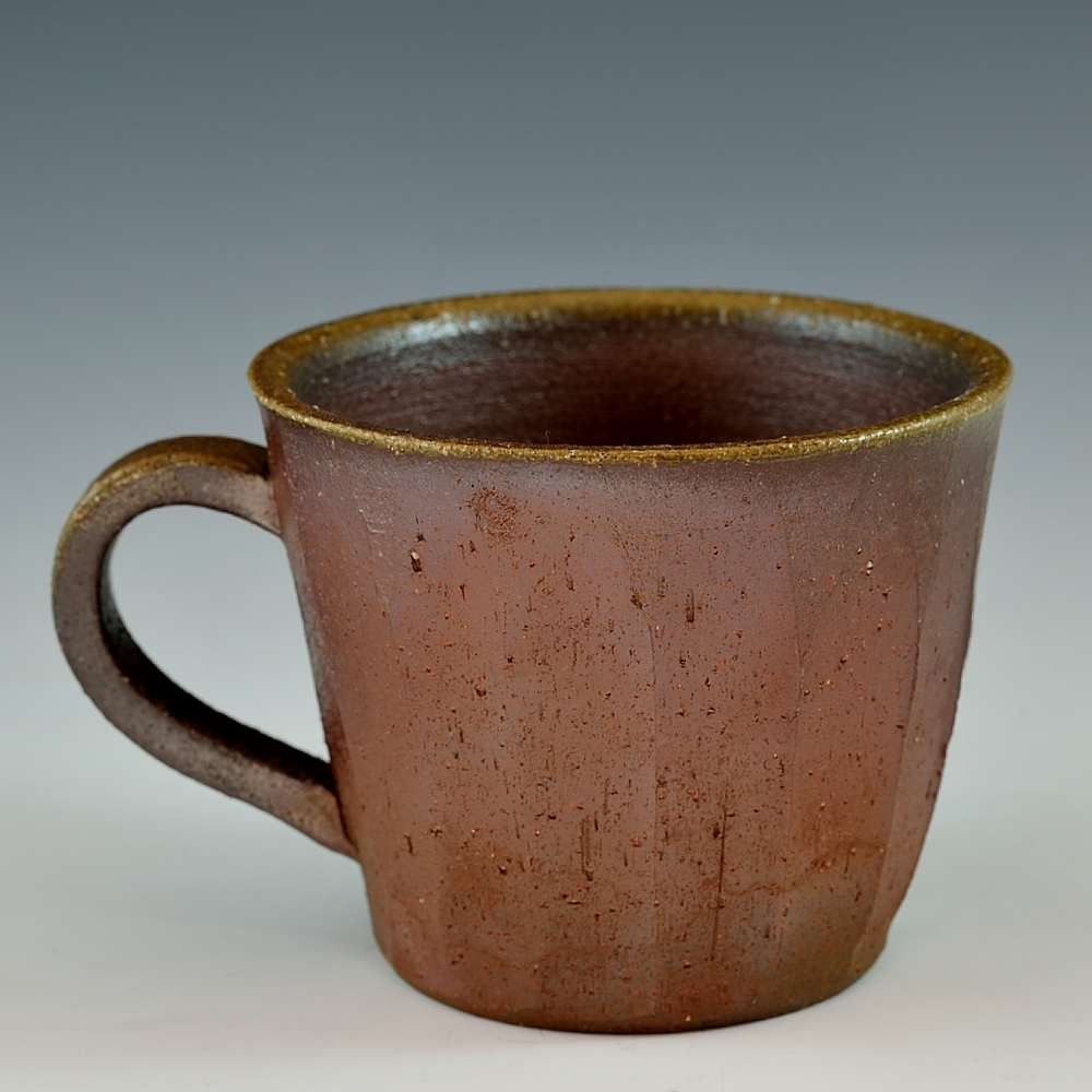 Carved Mug Cup Three. Hand crafted and signed by ceramic artist, Mizuho Kimura. Wheel formed and fired with red pine wood in the fire-clay brick kiln for 14 days. Unglazed, unpainted and all natural colors. Cup: 8cm diameter, 9cm high, Microwave- and dishwasher-safe The colors and the patterns may vary as each item is a unique piece of art. If you would like more details about this item, please contact us.