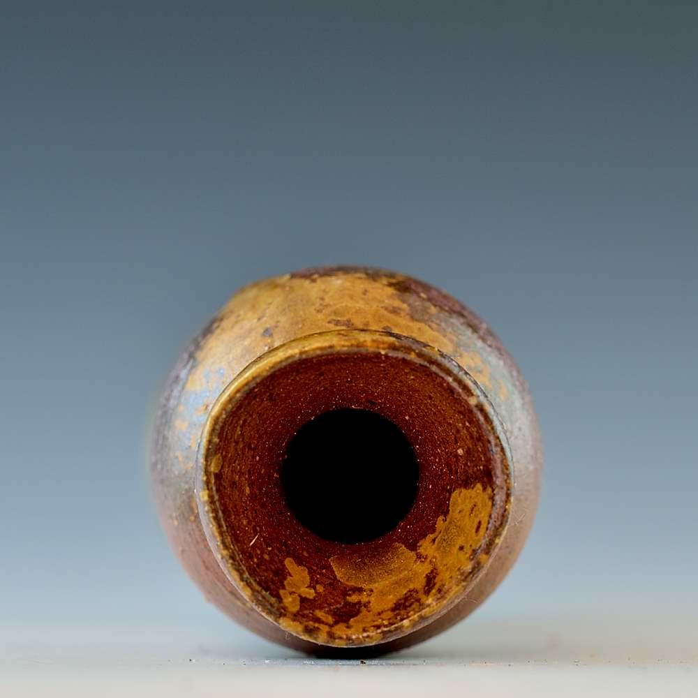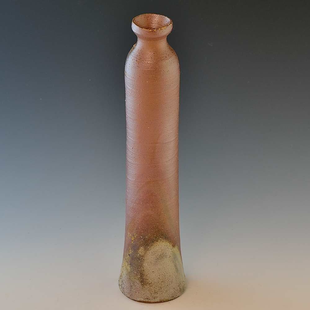 Doll Shape Vase. Hand crafted and signed by ceramic artist, Bifu Kimura. Wheel formed and fired with red pine wood in the fire-clay brick kiln for 14 days. Unglazed, unpainted and all natural colors. Flower Vase: 6cm diameter, 24cm high, The colors and the patterns may vary as each item is a unique piece of art. If you would like more details about this item, please contact us.