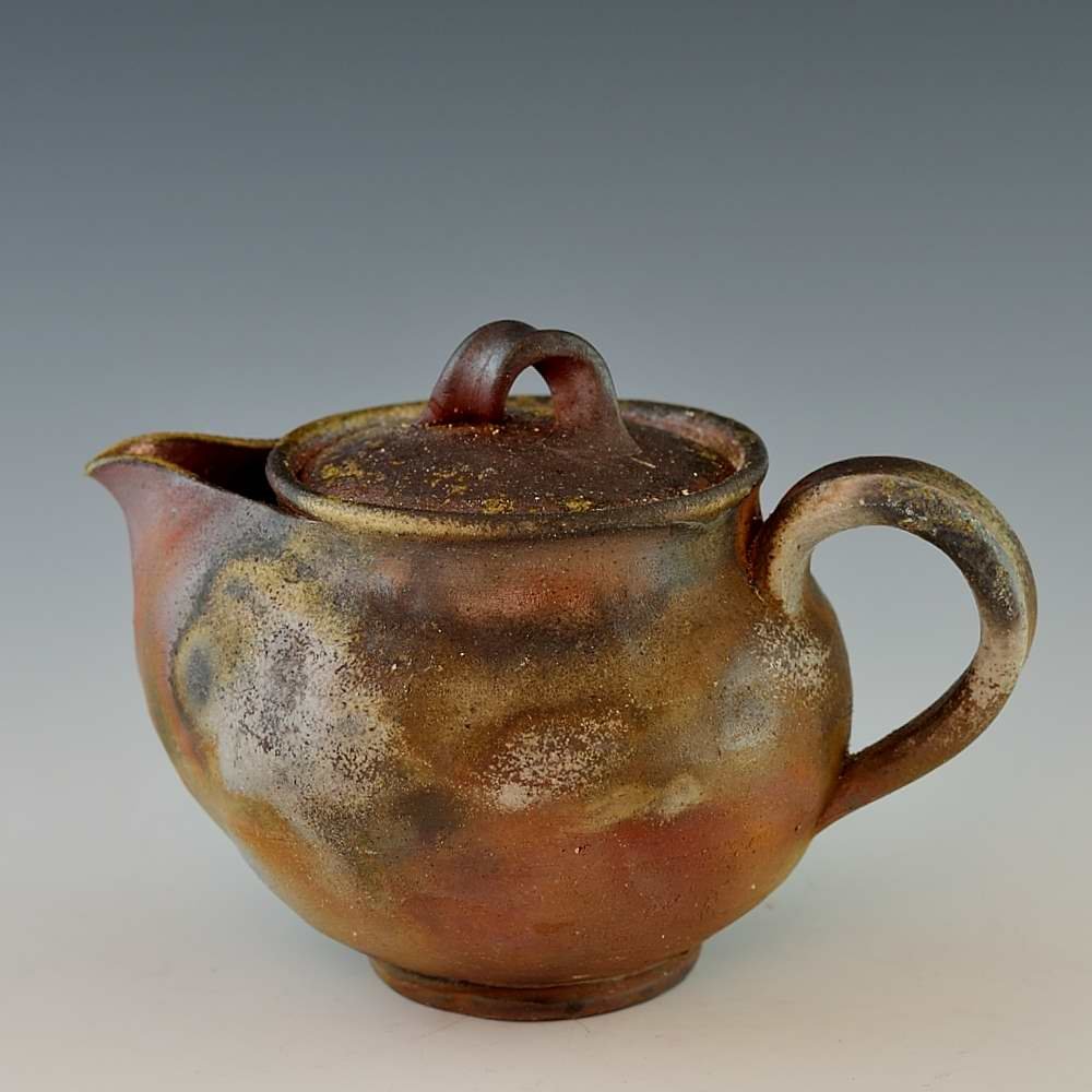 Hand Formed Back Handle Tea Pot. Hand crafted and signed by ceramic artist, Bifu Kimura. Hand formed and fired with red pine wood in the fire-clay brick kiln for 14 days. Unglazed, unpainted and all natural colors. Tea Pot: 13cm long, 9cm diameter, 9cm high, Holds 200ml Microwave- and dishwasher-safe The colors and the patterns may vary as each item is a unique piece of art. If you would like more details about this item, please contact us.
