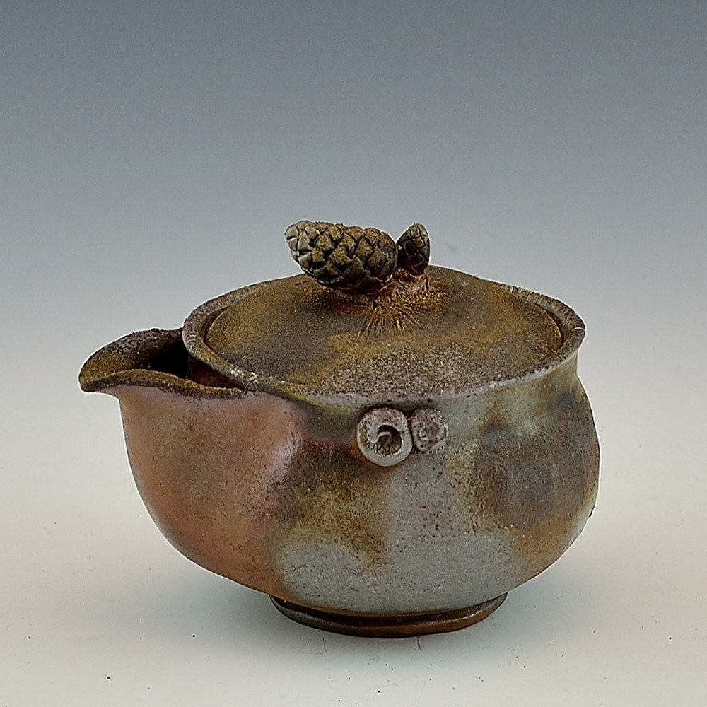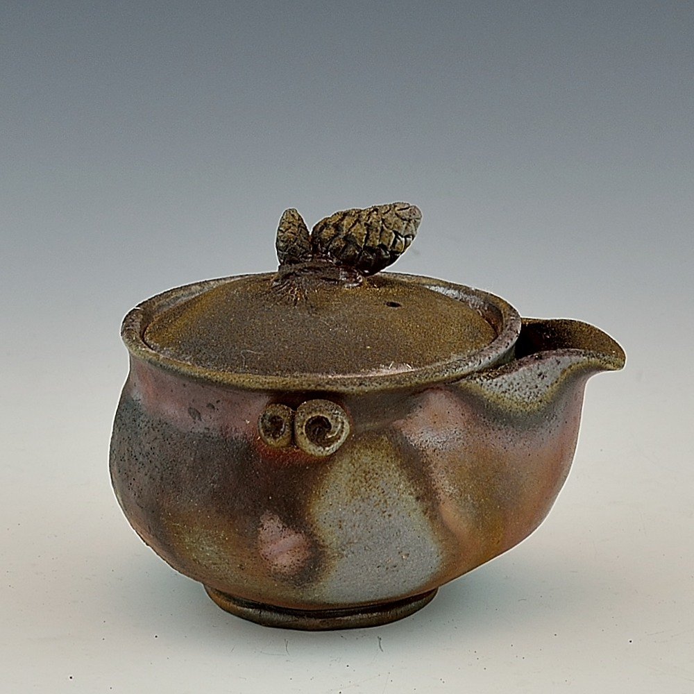 Hand Formed Tea Pot. Hand crafted and signed by ceramic artist, Bifu Kimura. Hand formed and fired with red pine wood in the fire-clay brick kiln for 14 days. Unglazed, unpainted and all natural colors. Tea Pot: 9cm diameter, 8cm high, Holds 150ml Microwave- and dishwasher-safe The colors and the patterns may vary as each item is a unique piece of art. If you would like more details about this item, please contact us.