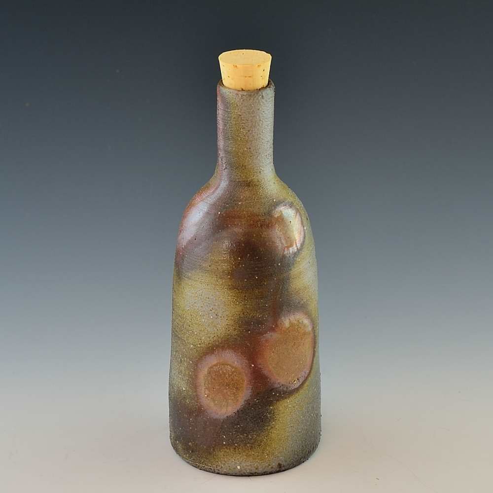 Korogashi Bottle (Small). Multi-purpose bottle for water, wine or any other drinks of your choice. Hand crafted and signed by ceramic artist, Bifu Kimura. Wheel formed and fired with red pine wood in the fire-clay brick kiln for 14 days. Unglazed, unpainted and all natural colors. Bottle: 8cm diameter, 19cm high, Holds 300ml Includes: cork (not shown in the picture) Microwave- and dishwasher-safe The colors and the patterns may vary as each item is a unique piece of art. If you would like more details about this item, please contact us.