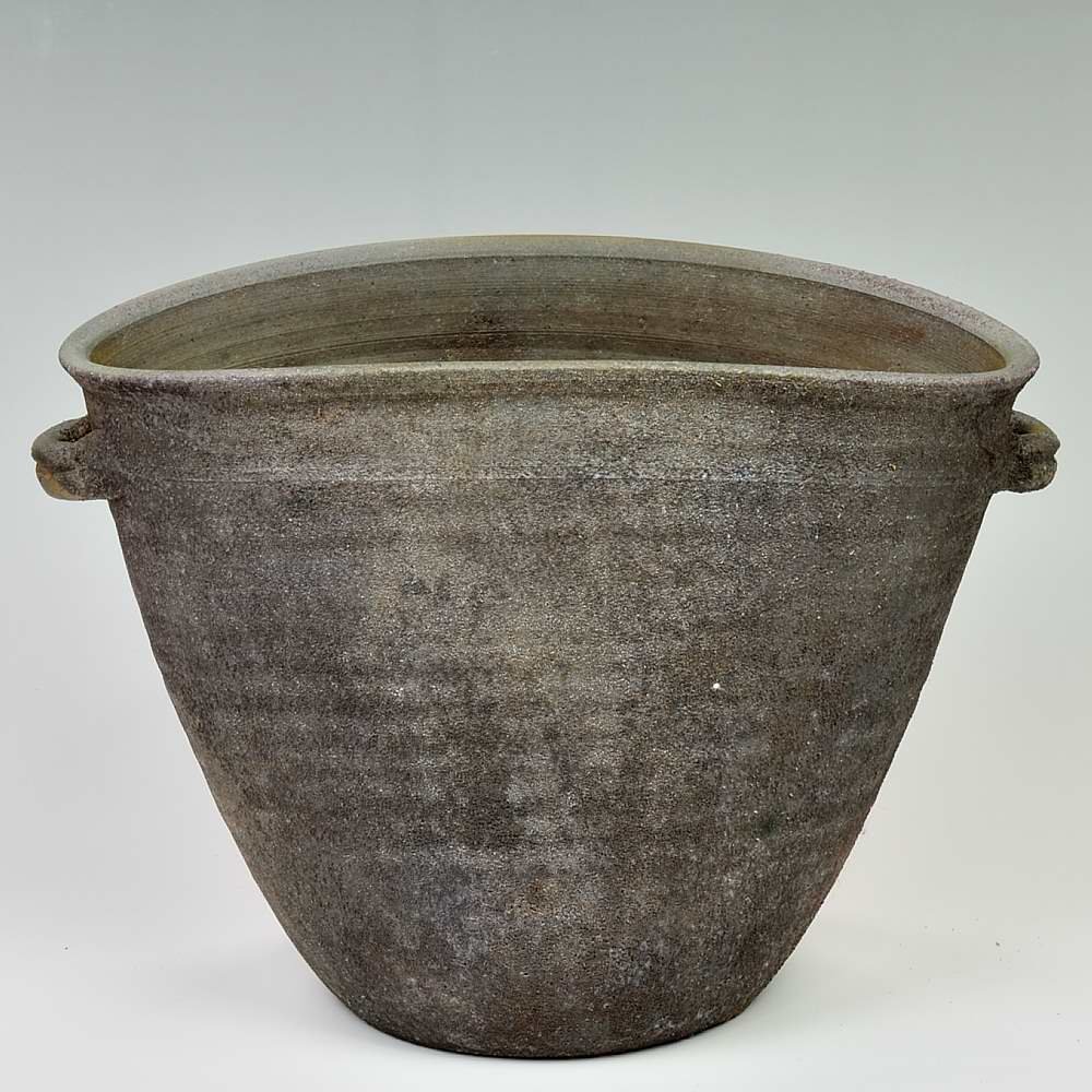 Korogashi Wide Mouth Ear Knob Vase. Hand crafted and signed by ceramic artist, Bifu Kimura. Wheel formed and fired with red pine wood in the fire-clay brick kiln for 14 days. Unglazed, unpainted and all natural colors.Flower Vase: 30cm long, 17cm wide, 20cm high, The colors and the patterns may vary as each item is a unique piece of art. If you would like more details about this item, please contact us.