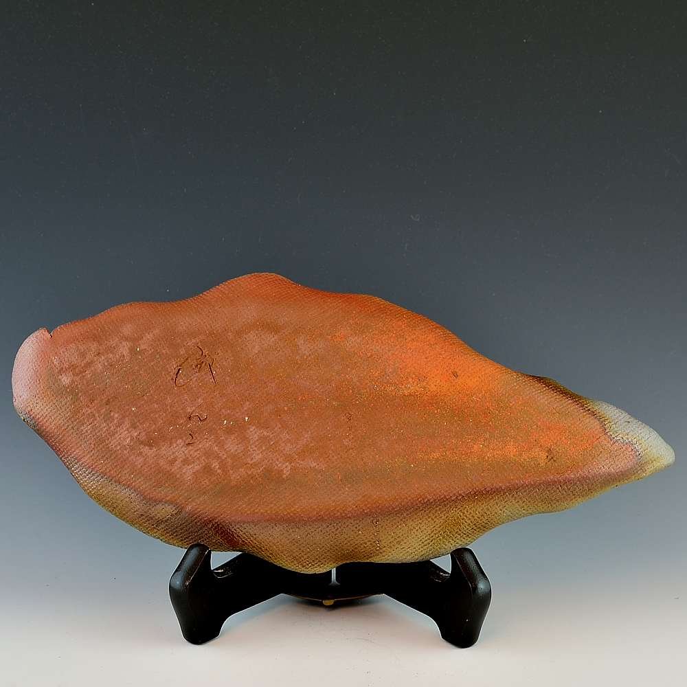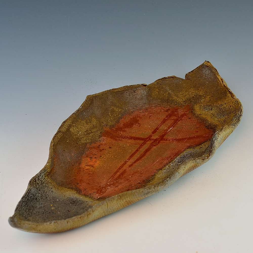 Leaf Shape Plate. Hand crafted and signed by ceramic artist, Bifu Kimura. Hand formed and fired with red pine wood in the fire-clay brick kiln for 14 days. Unglazed, unpainted and all natural colors. Plate: 30cm long, 15cm wide, 2cm high, Microwave- and dishwasher-safe The colors and the patterns may vary as each item is a unique piece of art. If you would like more details about this item, please contact us.