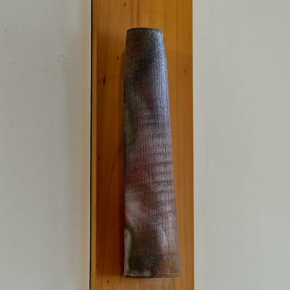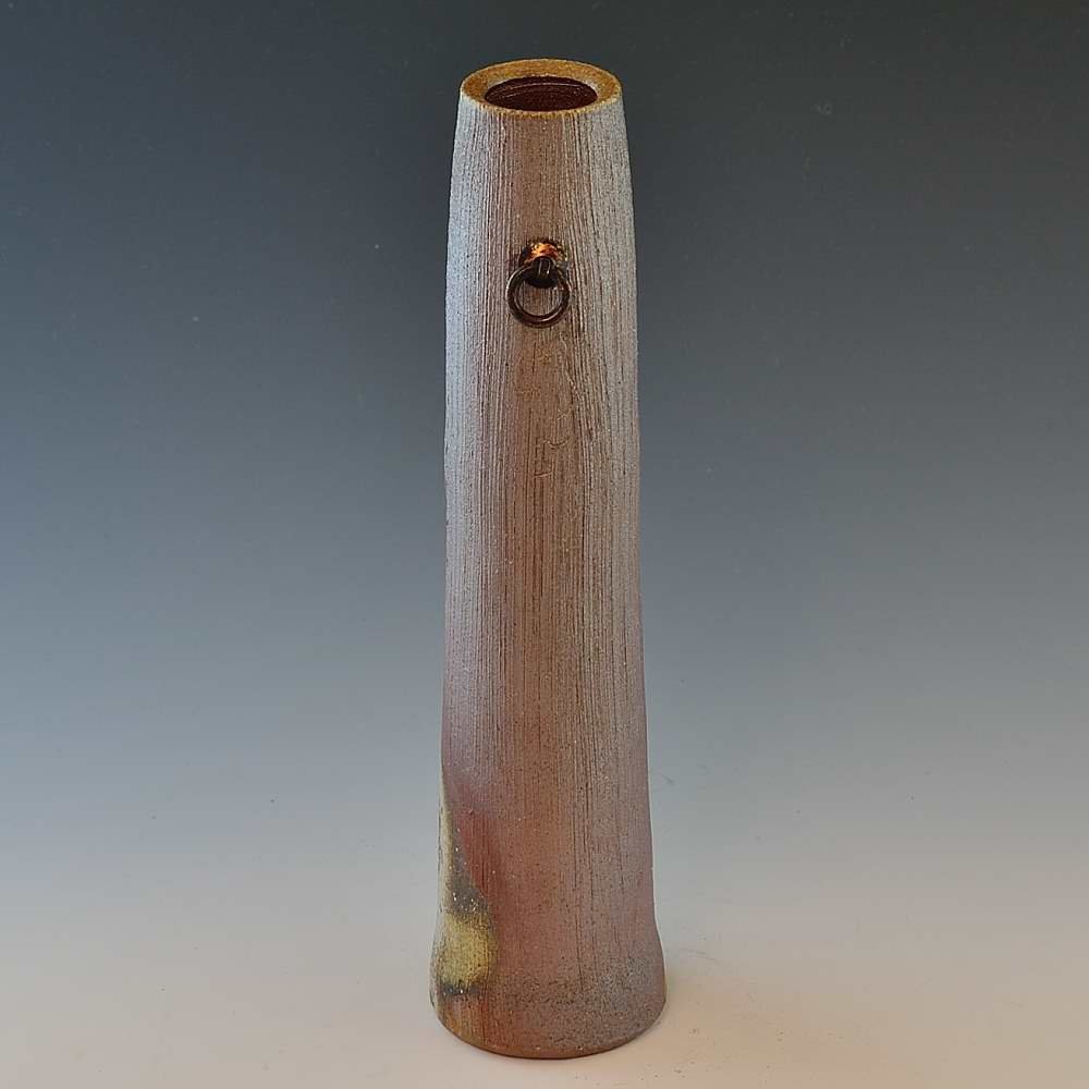Long Body Hanging Vase. Hand crafted and signed by ceramic artist, Bifu Kimura. Wheel formed and fired with red pine wood in the fire-clay brick kiln for 14 days. Unglazed, unpainted and all natural colors. Flower Vase: 6cm diameter, 24cm high, Includes: hook (in the back of the vase) The colors and the patterns may vary as each item is a unique piece of art. If you would like more details about this item, please contact us.