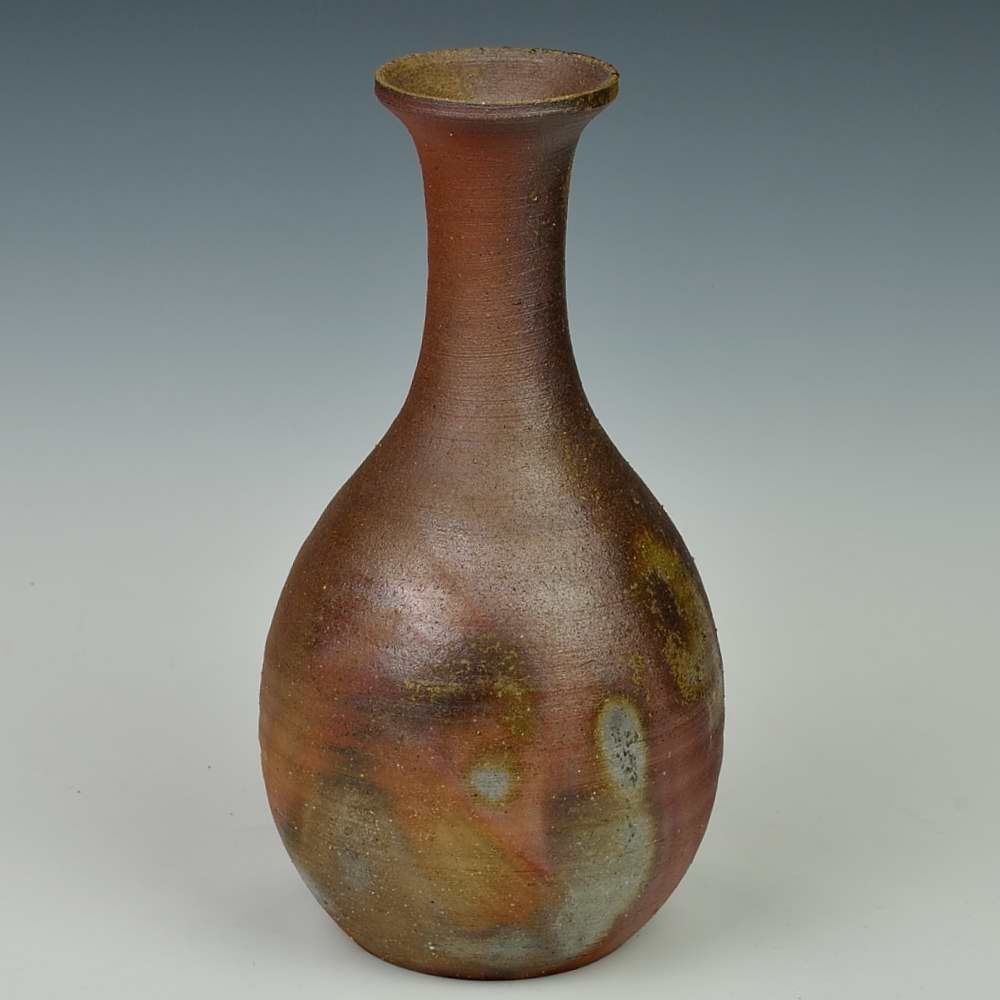 Long Neck Vase. Hand crafted and signed by ceramic artist, Bifu Kimura. Wheel formed and fired with red pine wood in the fire-clay brick kiln for 14 days. Unglazed, unpainted and all natural colors. Flower Vase: 12cm diameter, 22cm high, The colors and the patterns may vary as each item is a unique piece of art. If you would like more details about this item, please contact us.