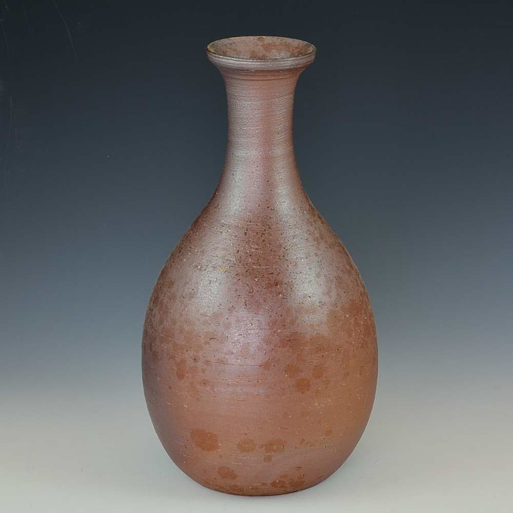 Long Neck Vase. Hand crafted and signed by ceramic artist, Bifu Kimura. Wheel formed and fired with red pine wood in the fire-clay brick kiln for 14 days. Unglazed, unpainted and all natural colors. Flower Vase: 12cm diameter, 22cm high, The colors and the patterns may vary as each item is a unique piece of art. If you would like more details about this item, please contact us.