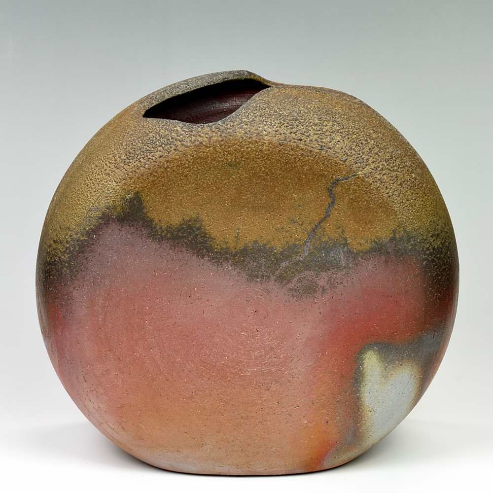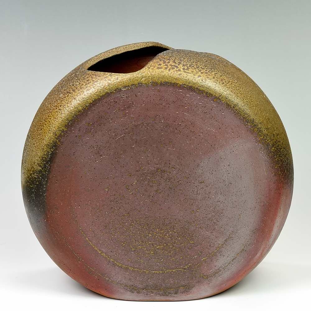 Moon Shape Sculptural Vase (XLarge). Hand crafted and signed by ceramic artist, Yosuke Kimura. Hand formed and fired with red pine wood in the fire-clay brick kiln for 14 days. Unglazed, unpainted and all natural colors.Flower Vase: 30cm long, 12cm wide, 30cm high, The colors and the patterns may vary as each item is a unique piece of art. If you would like more details about this item, please contact us.