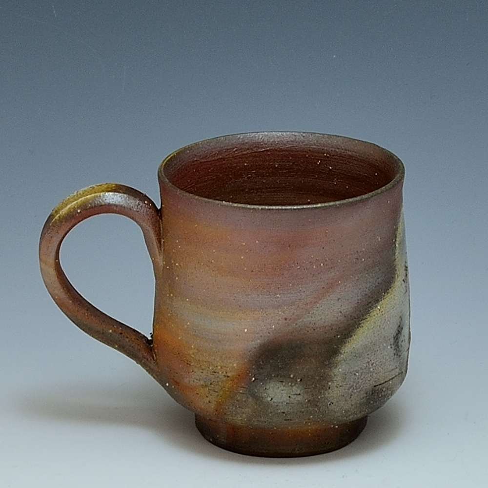 Mug Cup One. Hand crafted and signed by ceramic artist, Bifu Kimura. Wheel formed and fired with red pine wood in the fire-clay brick kiln for 14 days. Unglazed, unpainted and all natural colors. Cup: 8cm diameter, 9cm high, Microwave- and dishwasher-safe The colors and the patterns may vary as each item is a unique piece of art. If you would like more details about this item, please contact us.