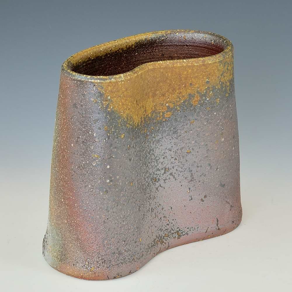 Organic Altered Vase (X-Small). Hand crafted and signed by ceramic artist, Yosuke Kimura. Wheel formed and fired with red pine wood in the fire-clay brick kiln for 14 days. Unglazed, unpainted and all natural colors.Flower Vase: 12cm long, 7cm wide, 10cm high, The colors and the patterns may vary as each item is a unique piece of art. If you would like more details about this item, please contact us.