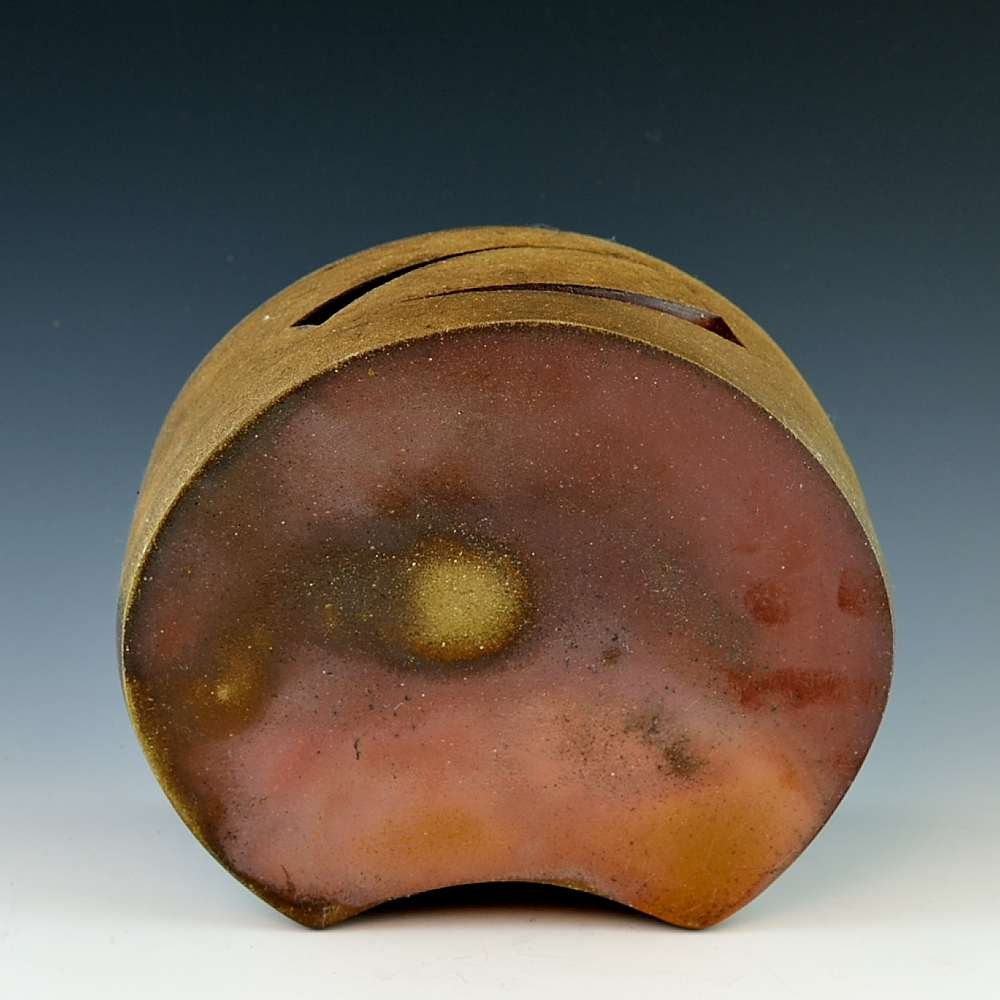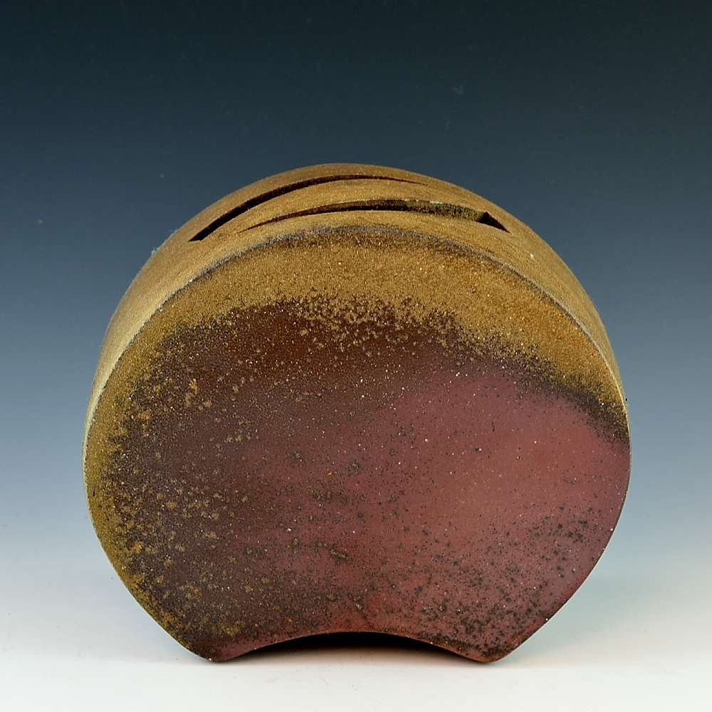 Pillow Shape Sculptural Vase. Hand crafted and signed by ceramic artist, Bifu Kimura. Hand formed and fired with red pine wood in the fire-clay brick kiln for 14 days. Unglazed, unpainted and all natural colors. Flower Vase: 20cm long, 9cm wide, 18cm high, The colors and the patterns may vary as each item is a unique piece of art. If you would like more details about this item, please contact us.