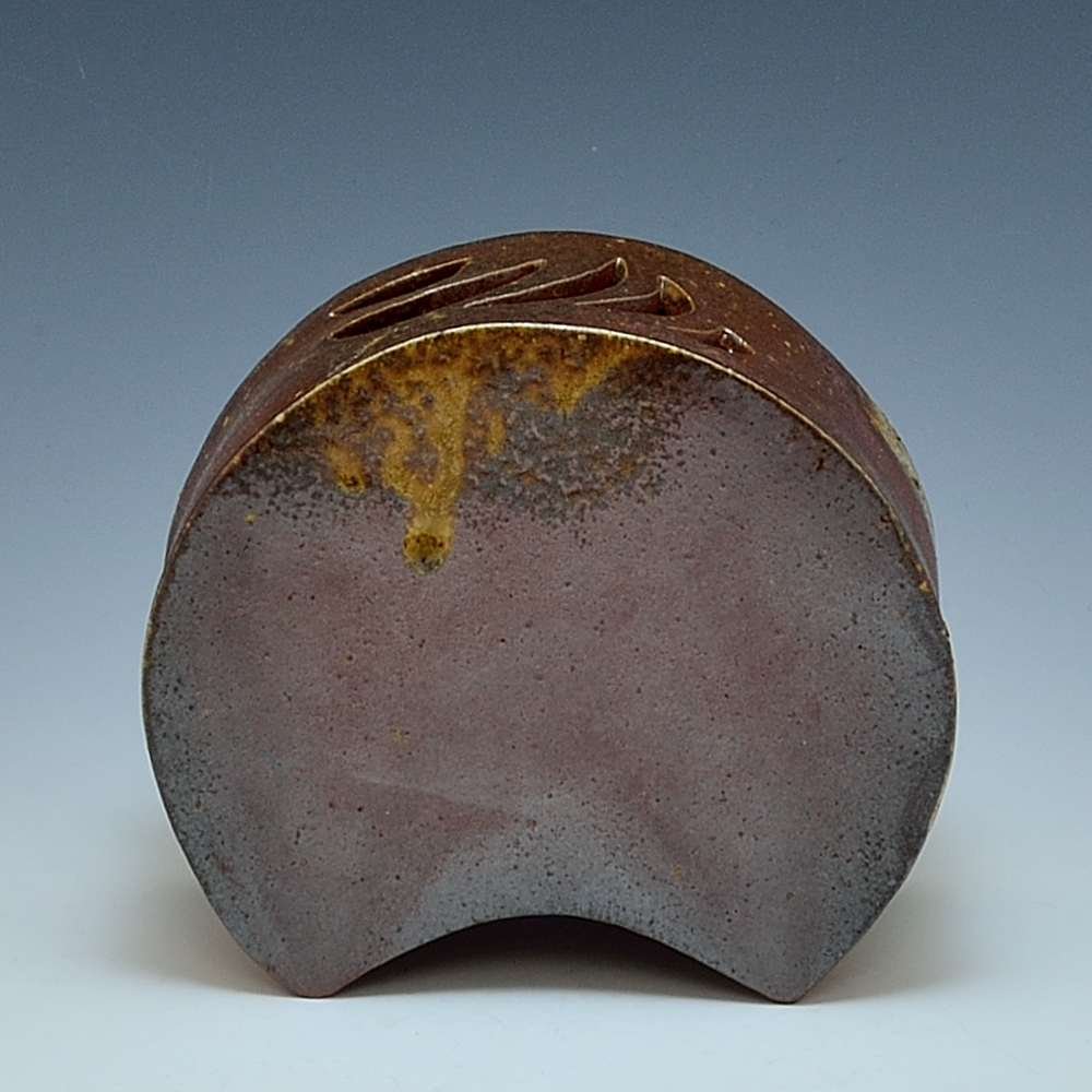 Pillow Shape Sculptural Vase (Small). Hand crafted and signed by ceramic artist, Bifu Kimura. Hand formed and fired with red pine wood in the fire-clay brick kiln for 14 days. Unglazed, unpainted and all natural colors. Flower Vase: 14cm long, 6cm wide, 12cm high, The colors and the patterns may vary as each item is a unique piece of art. If you would like more details about this item, please contact us.