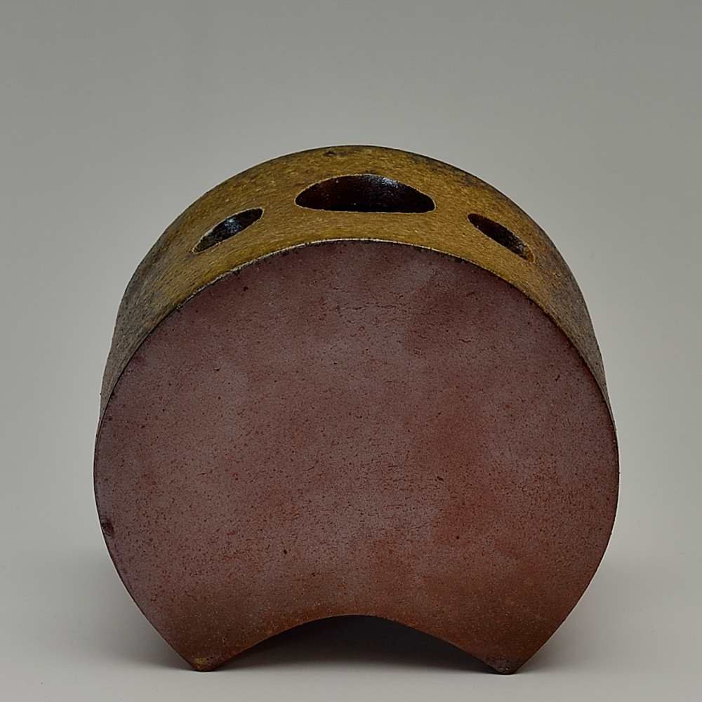 Pillow Shape Sculptural Vase (Small). Hand crafted and signed by ceramic artist, Bifu Kimura. Hand formed and fired with red pine wood in the fire-clay brick kiln for 14 days. Unglazed, unpainted and all natural colors. Flower Vase: 14cm long, 9cm wide, 12cm high, The colors and the patterns may vary as each item is a unique piece of art. If you would like more details about this item, please contact us.