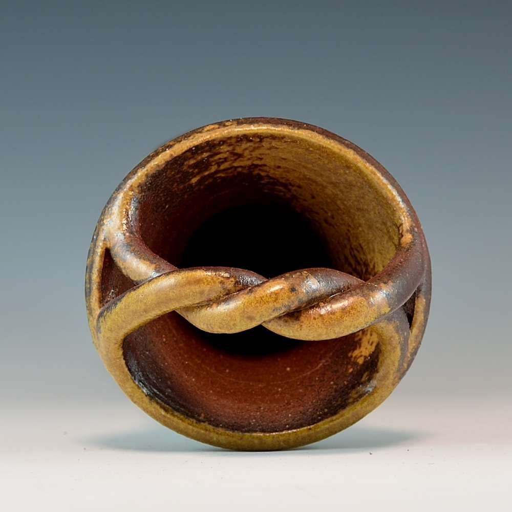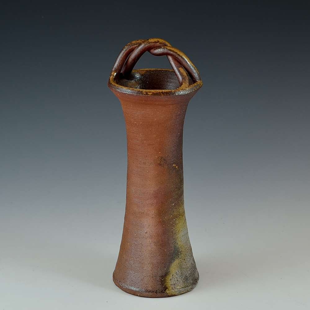 Plaited Handle Vase. Hand crafted and signed by ceramic artist, Bifu Kimura. Wheel formed and fired with red pine wood in the fire-clay brick kiln for 14 days. Unglazed, unpainted and all natural colors.Flower Vase: 7cm diameter, 20cm high,The colors and the patterns may vary as each item is a unique piece of art. If you would like more details about this item, please contact us.