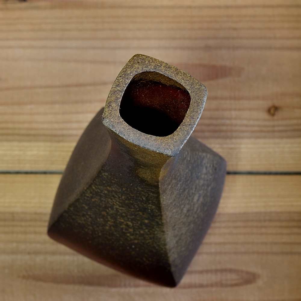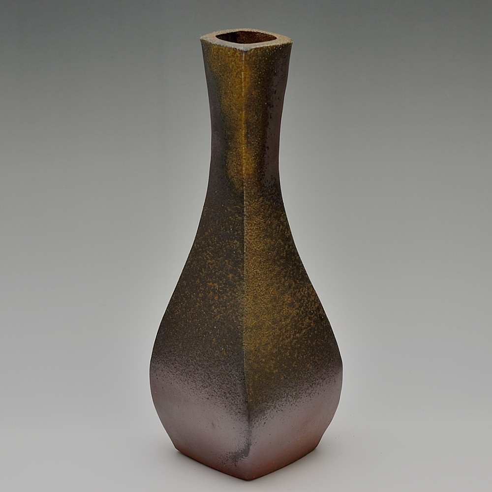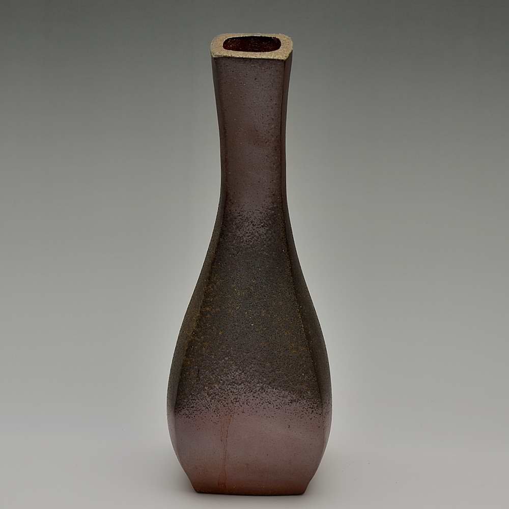 Quad Tower Sculptural Vase. Hand crafted and signed by ceramic artist, Bifu Kimura. Hand formed and fired with red pine wood in the fire-clay brick kiln for 14 days. Unglazed, unpainted and all natural colors. Flower Vase: 12cm long, 12cm wide, 36cm high, The colors and the patterns may vary as each item is a unique piece of art. If you would like more details about this item, please contact us.