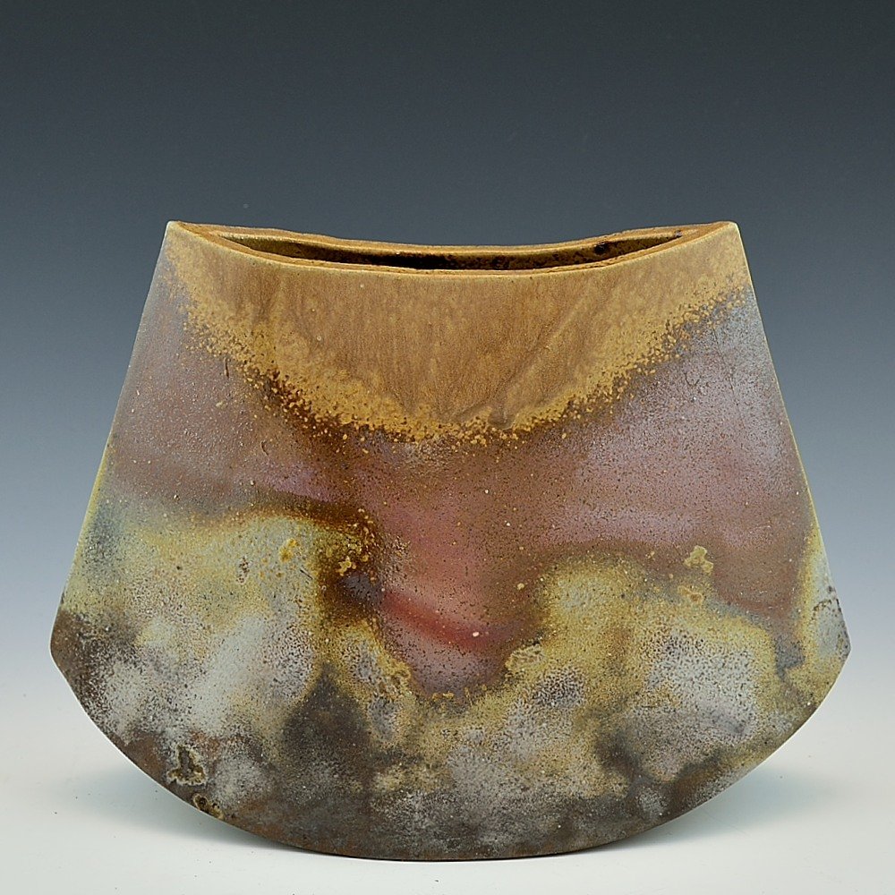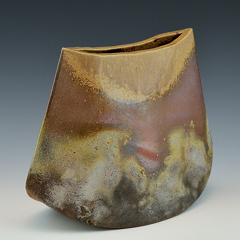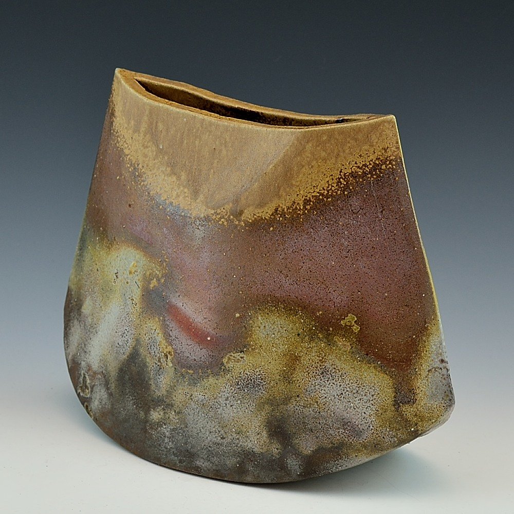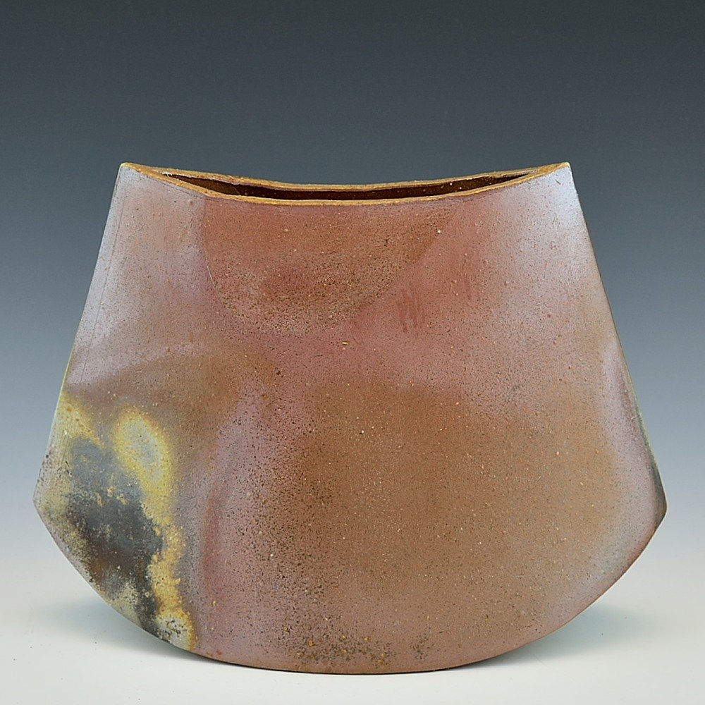 Rocking Sculptural Vase (Small). Hand crafted and signed by ceramic artist, Yosuke Kimura. Hand formed and fired with red pine wood in the fire-clay brick kiln for 14 days. Unglazed, unpainted and all natural colors.Flower Vase: 24cm long, 12cm wide, 18cm high, The colors and the patterns may vary as each item is a unique piece of art. If you would like more details about this item, please contact us.