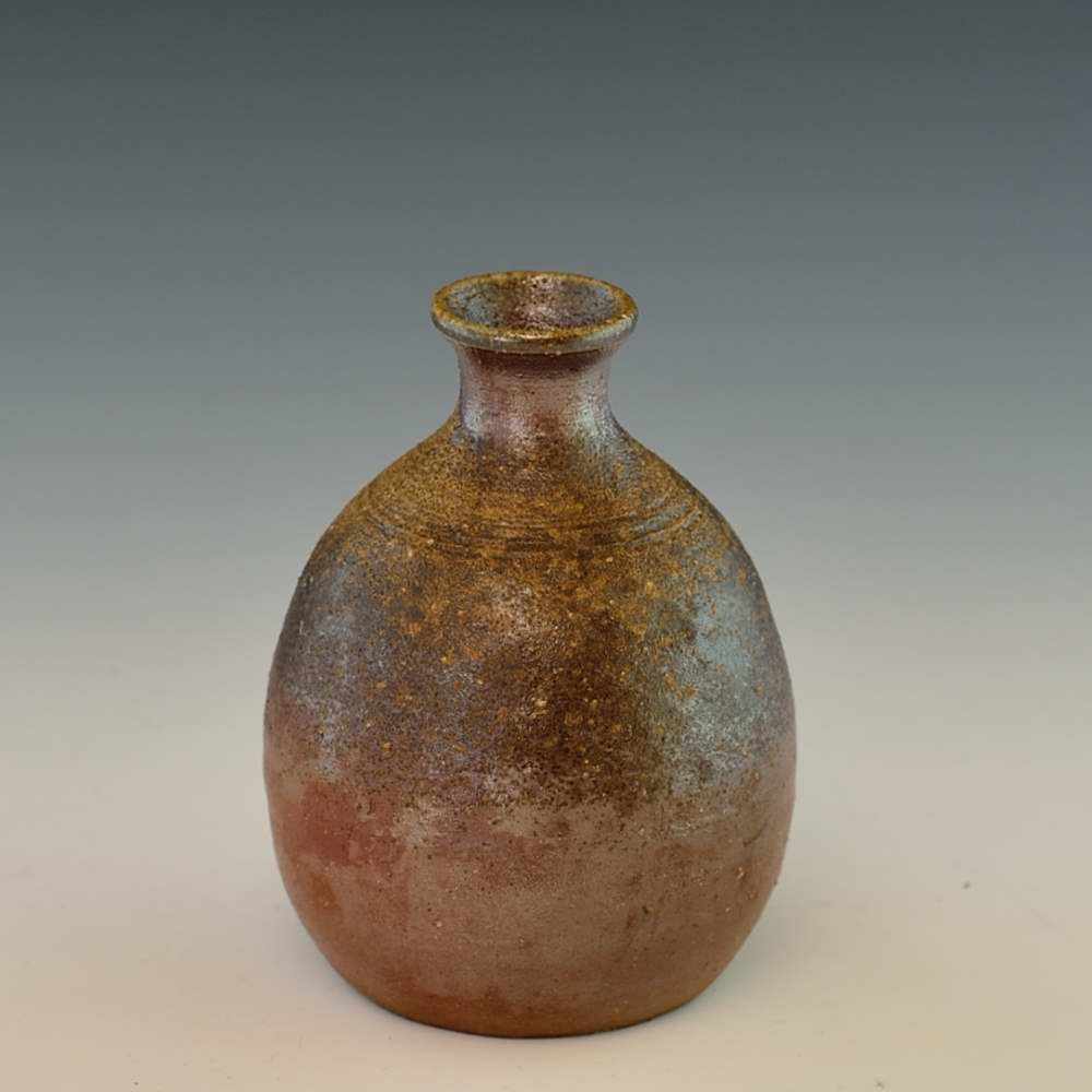 Sake Bottle (Small). Hand crafted and signed by ceramic artist, Bifu Kimura. Wheel formed and fired with red pine wood in the fire-clay brick kiln for 14 days. Unglazed, unpainted and all natural colors. Sake Bottle: 7cm diameter, 10cm high, Holds 180ml Microwave- and dishwasher-safe The colors and the patterns may vary as each item is a unique piece of art. If you would like more details about this item, please contact us.