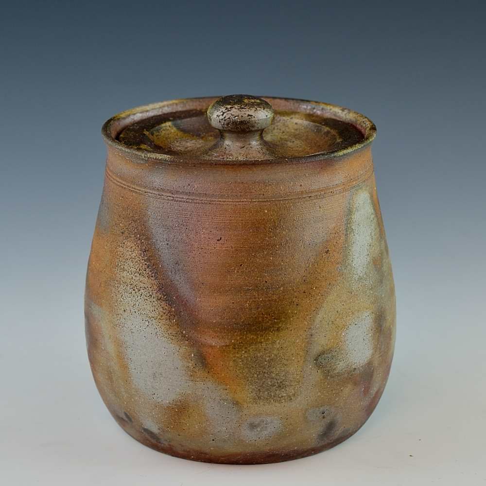 Salt Jar (Large). Hand crafted and signed by ceramic artist, Bifu Kimura. Wheel formed and fired with red pine wood in the fire-clay brick kiln for 14 days. Unglazed, unpainted and all natural colors. Jar: 12cm diameter, 12cm high, Microwave- and dishwasher-safe The colors and the patterns may vary as each item is a unique piece of art. If you would like more details about this item, please contact us.