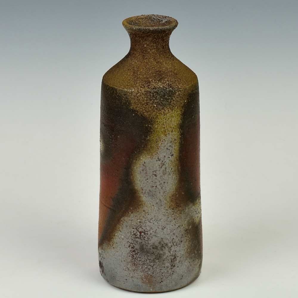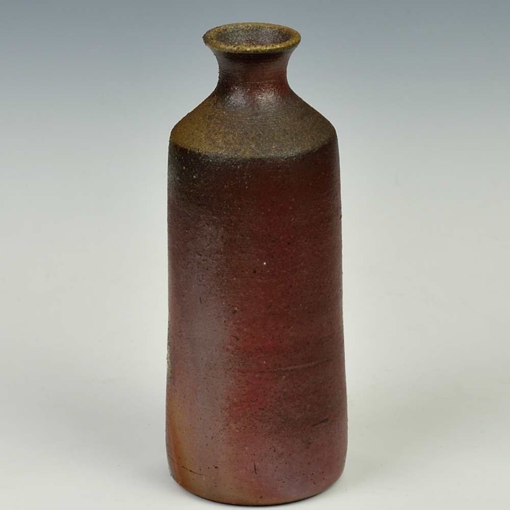 Slim Sake Bottle. Hand crafted and signed by ceramic artist, Yosuke Kimura. Wheel formed and fired with red pine wood in the fire-clay brick kiln for 14 days. Unglazed, unpainted and all natural colors. Sake Bottle: 6cm diameter, 15cm high, Holds 250ml Cup sold separately. The colors and the patterns may vary as each item is a unique piece of art. If you would like more details about this item, please contact us.