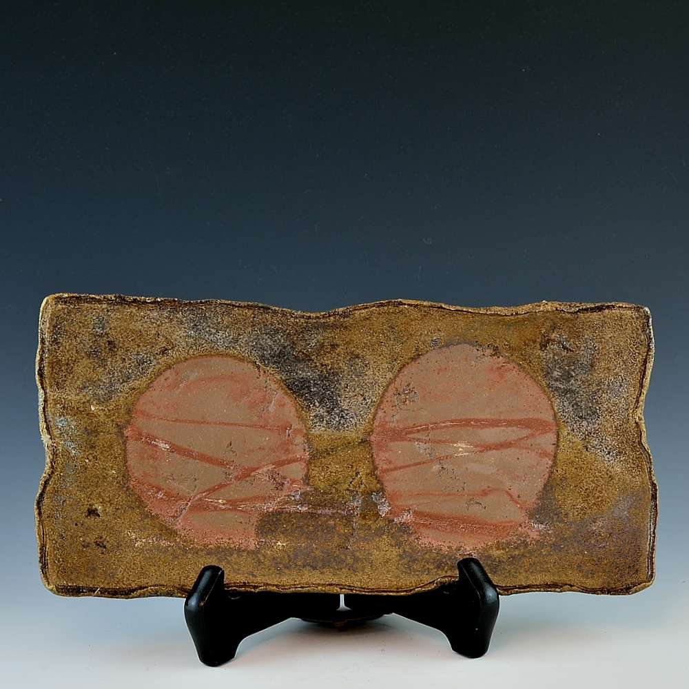 Stone-face Rectangular Plate. Hand crafted and signed by ceramic artist, Bifu Kimura. Hand formed and fired with red pine wood in the fire-clay brick kiln for 14 days. Unglazed, unpainted and all natural colors. Plate: 28cm long, 14cm wide, 2cm high, Microwave- and dishwasher-safe The colors and the patterns may vary as each item is a unique piece of art. If you would like more details about this item, please contact us.