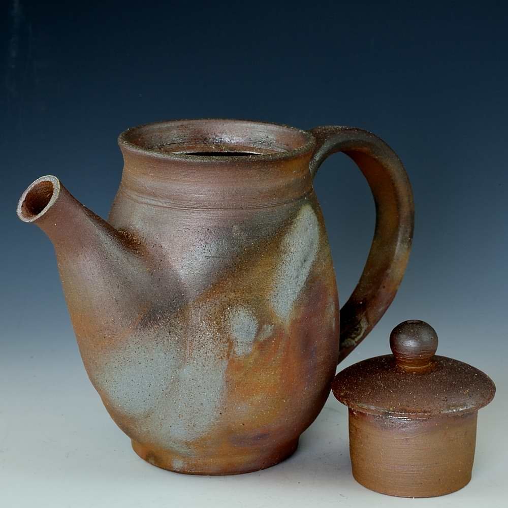 Tall Back Handle Tea Pot. Hand crafted and signed by ceramic artist, Bifu Kimura. Wheel formed and fired with red pine wood in the fire-clay brick kiln for 14 days. Unglazed, unpainted and all natural colors. Tea Pot: 18cm long, 9cm diameter, 16cm high, Holds 550ml Microwave- and dishwasher-safe The colors and the patterns may vary as each item is a unique piece of art. If you would like more details about this item, please contact us.