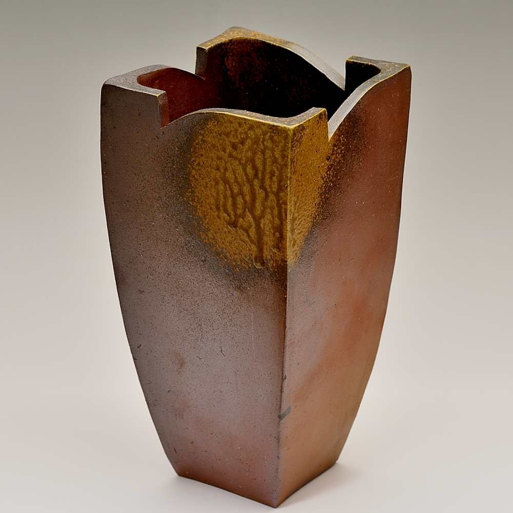 Tower Watch Sculptural Vase (Small). Hand crafted and signed by ceramic artist, Bifu Kimura. Hand formed and fired with red pine wood in the fire-clay brick kiln for 14 days. Unglazed, unpainted and all natural colors.Flower Vase: 14cm wide, 14cm diameter, 27cm high, The colors and the patterns may vary as each item is a unique piece of art. If you would like more details about this item, please contact us.