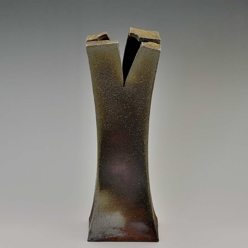 Tree Shape Sculptural Vase. Hand crafted and signed by ceramic artist, Yosuke Kimura. Hand formed and fired with red pine wood in the fire-clay brick kiln for 14 days. Unglazed, unpainted and all natural colors.Flower Vase: 9cm long, 7cm wide, 27cm high,The colors and the patterns may vary as each item is a unique piece of art. If you would like more details about this item, please contact us.