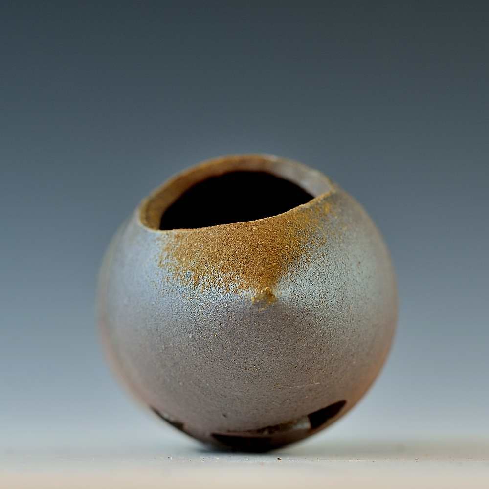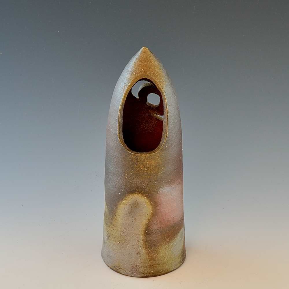 Triangular Cone Vase. Hand crafted and signed by ceramic artist, Bifu Kimura. Wheel formed and fired with red pine wood in the fire-clay brick kiln for 14 days. Unglazed, unpainted and all natural colors. Flower Vase: 7cm diameter, 19cm high, The colors and the patterns may vary as each item is a unique piece of art. If you would like more details about this item, please contact us.