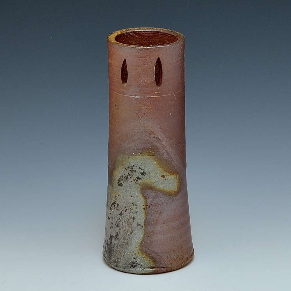 Watermark Vase. Hand crafted and signed by ceramic artist, Bifu Kimura. Wheel formed and fired with red pine wood in the fire-clay brick kiln for 14 days. Unglazed, unpainted and all natural colors. Flower Vase: 8cm diameter, 18cm high, The colors and the patterns may vary as each item is a unique piece of art. If you would like more details about this item, please contact us.