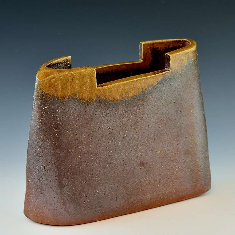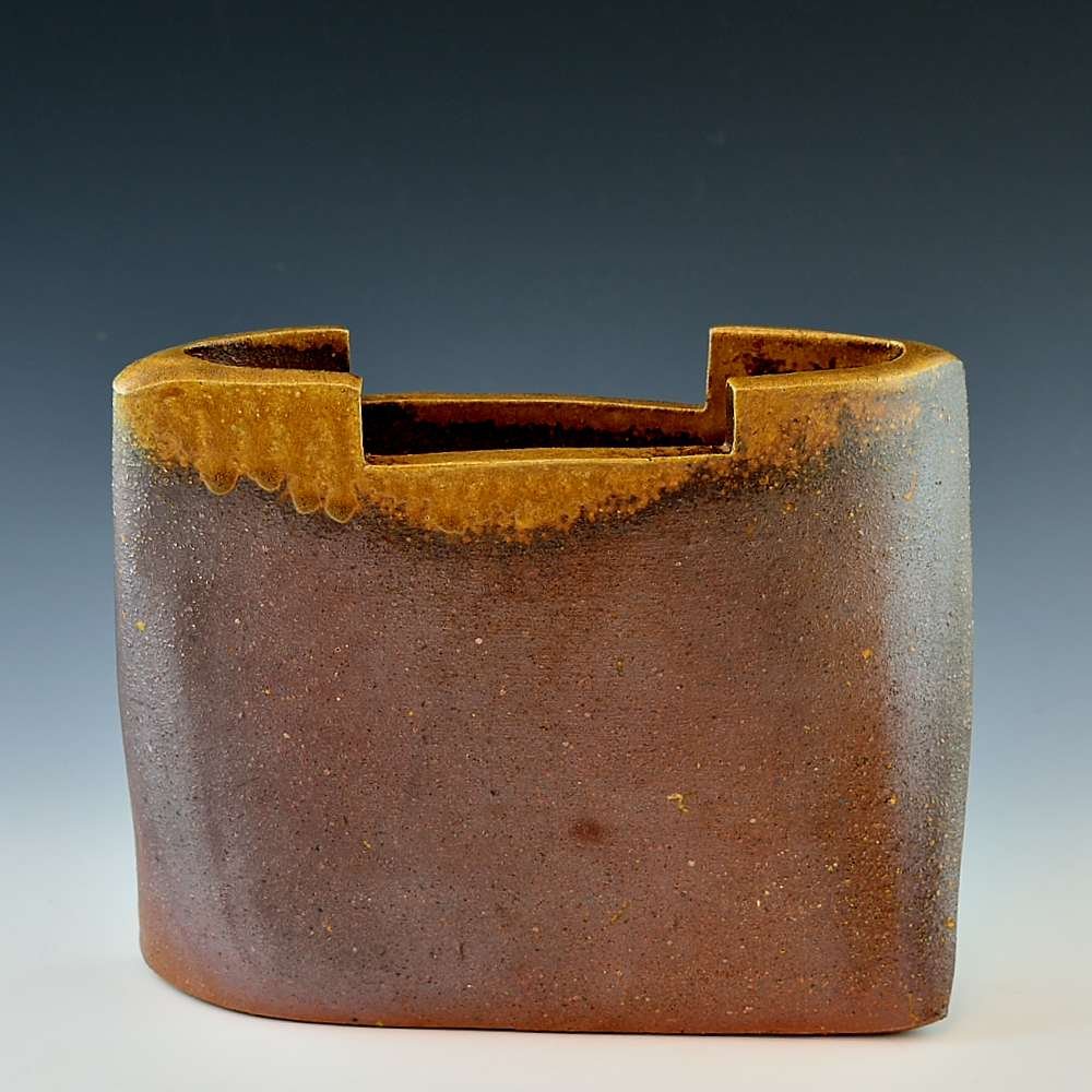 Wave Tower Sculptural Vase. Hand crafted and signed by ceramic artist, Bifu Kimura. Hand formed and fired with red pine wood in the fire-clay brick kiln for 14 days. Unglazed, unpainted and all natural colors. Flower Vase: 20cm long, 8cm wide, 16cm high, The colors and the patterns may vary as each item is a unique piece of art. If you would like more details about this item, please contact us.