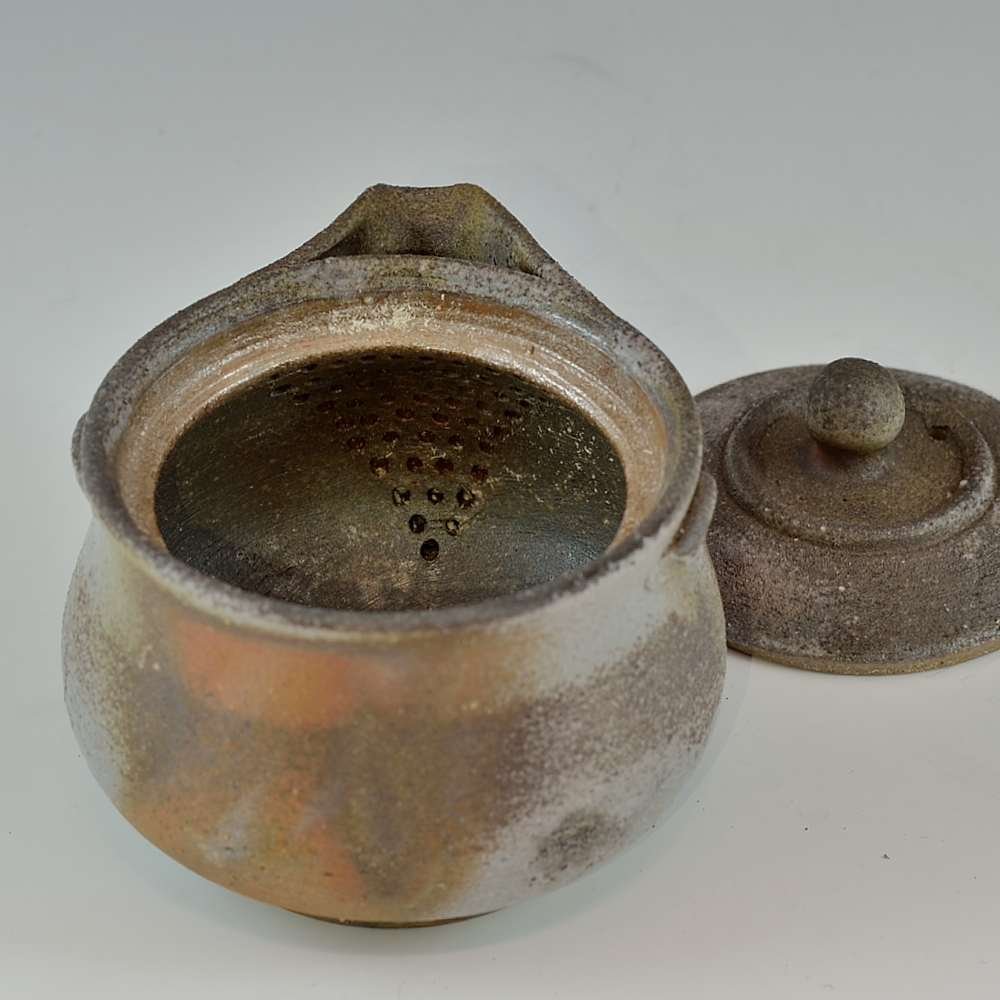 Wheel Tea Pot (Medium). Hand crafted and signed by ceramic artist, Bifu Kimura. Wheel formed and fired with red pine wood in the fire-clay brick kiln for 14 days. Unglazed, unpainted and all natural colors. Tea Pot: 9cm diameter, 8cm high, Holds 180ml Microwave- and dishwasher-safe The colors and the patterns may vary as each item is a unique piece of art. If you would like more details about this item, please contact us.