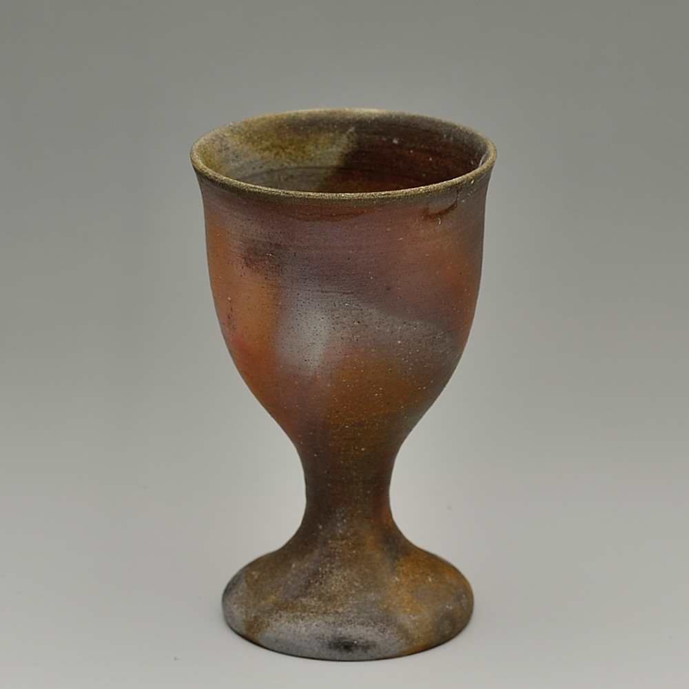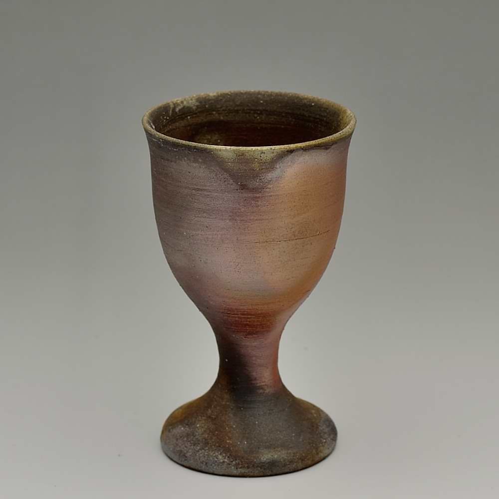 Wine Cup. Hand crafted and signed by ceramic artist, Bifu Kimura. Wheel formed and fired with red pine wood in the fire-clay brick kiln for 14 days. Unglazed, unpainted and all natural colors. Cup: 7cm diameter, 11cm high, Microwave- and dishwasher-safe The colors and the patterns may vary as each item is a unique piece of art. If you would like more details about this item, please contact us.