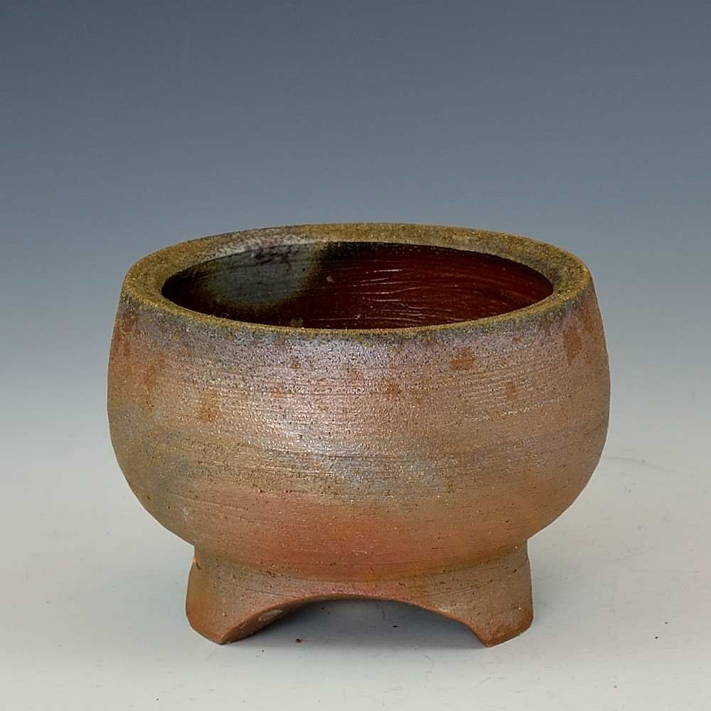 盆栽鉢(小)。木村微風によってろくろで作られ、作品の底には作家のサインが入っています。登り窯で赤松の割り木だけを使い、約2週間焼き締められました。釉薬は全く使われておらず、土と炎から生み出される自然の色をお楽しみください。花器: 直径7cm, 高さ約5cm, 備前焼は一点一点手作りのため、焼けや風合いが異なることが多少ございます。どうぞご了承ください。