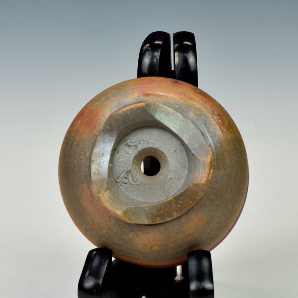 盆栽鉢(小)。木村微風によってろくろで作られ、作品の底には作家のサインが入っています。登り窯で赤松の割り木だけを使い、約2週間焼き締められました。釉薬は全く使われておらず、土と炎から生み出される自然の色をお楽しみください。花器: 直径9cm, 高さ約5cm, 備前焼は一点一点手作りのため、焼けや風合いが異なることが多少ございます。どうぞご了承ください。