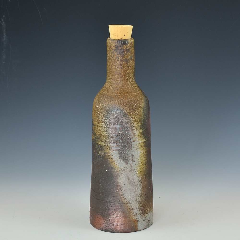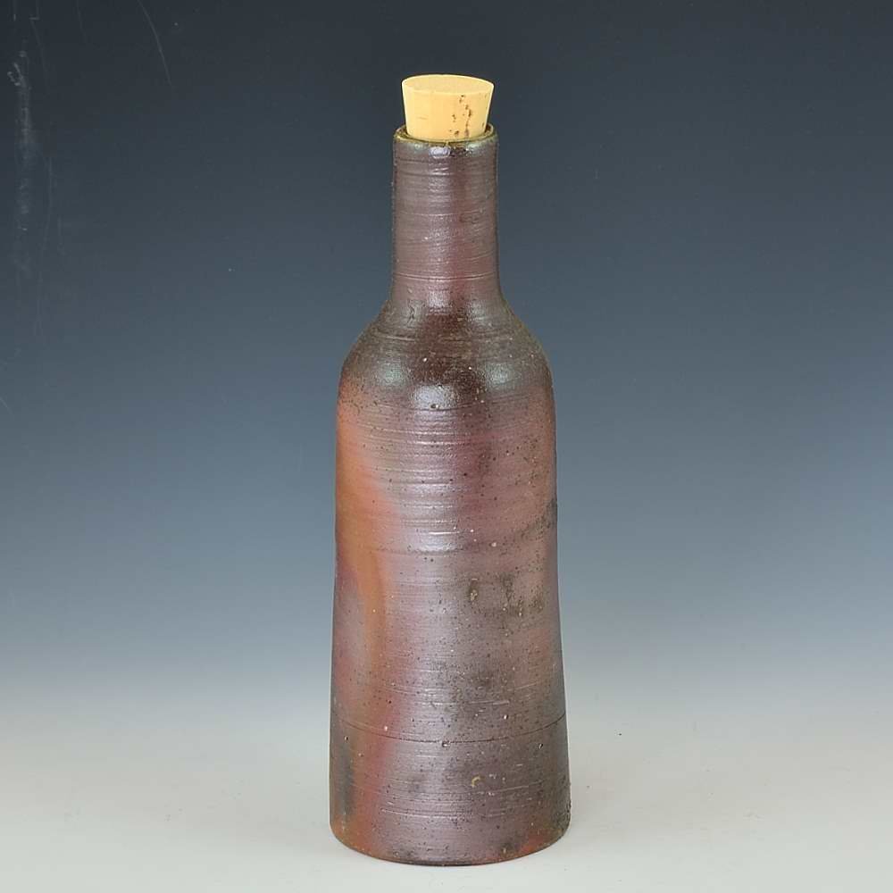 ボトル(小)。お水、お酒、焼酎、ワインなどを入れて自由にお使いいただけるボトルです。木村微風によってろくろで作られ、作品の底には作家のサインが入っています。登り窯で赤松の割り木だけを使い、約2週間焼き締められました。釉薬は全く使われておらず、土と炎から生み出される自然の色をお楽しみください。 ボトル: 直径8cm, 高さ19cm, 約300ml 程入ります。 コルクがついています。(画像には示されていません) 電子レンジ・食器洗浄機対応 備前焼は一点一点手作りのため、焼けや風合いが異なることが多少ございます。どうぞご了承ください。