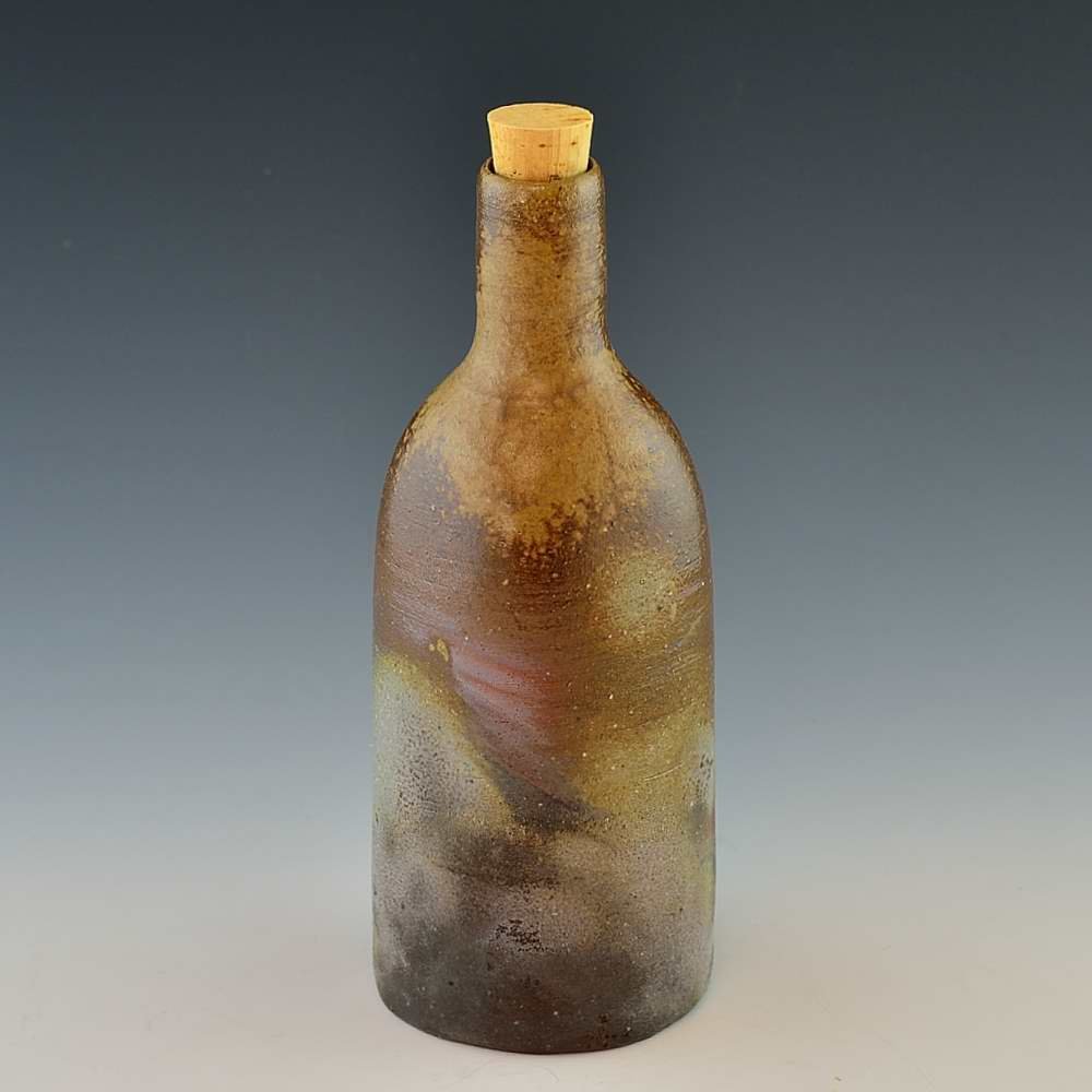 ボトル(小)。お水、お酒、焼酎、ワインなどを入れて自由にお使いいただけるボトルです。木村微風によってろくろで作られ、作品の底には作家のサインが入っています。登り窯で赤松の割り木だけを使い、約2週間焼き締められました。釉薬は全く使われておらず、土と炎から生み出される自然の色をお楽しみください。 ボトル: 直径8cm, 高さ19cm, 約300ml 程入ります。 コルクがついています。(画像には示されていません) 電子レンジ・食器洗浄機対応 備前焼は一点一点手作りのため、焼けや風合いが異なることが多少ございます。どうぞご了承ください。