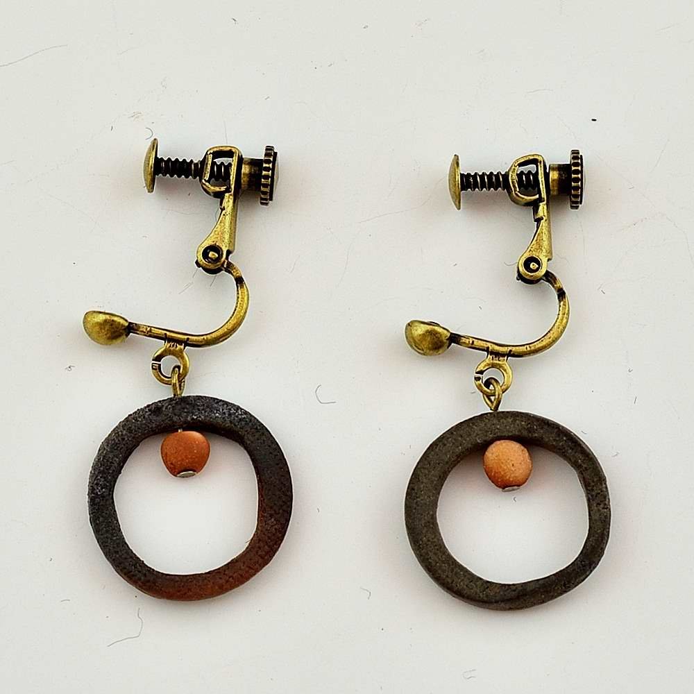 ピアス。木村微風によって手びねりで作られ、作品の底には作家のサインが入っています。登り窯で赤松の割り木だけを使い、約2週間焼き締められました。釉薬は全く使われておらず、土と炎から生み出される自然の色をお楽しみください。ピアス: 幅約1~3cm, 奥行約1~3cm, 備前焼は一点一点手作りのため、焼けや風合いが異なることが多少ございます。どうぞご了承ください。