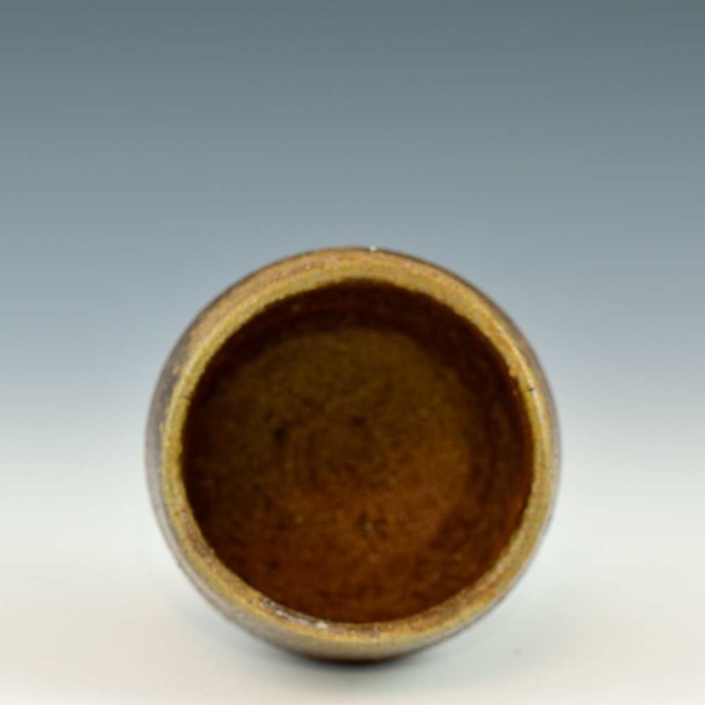 胡麻ぐい呑。木村微風によってろくろで作られ、作品の底には作家のサインが入っています。登り窯で赤松の割り木だけを使い、約2週間焼き締められました。釉薬は全く使われておらず、土と炎から生み出される自然の色をお楽しみください。 ぐい呑: 直径6cm, 高さ約5cm, 電子レンジ・食器洗浄機対応 備前焼は一点一点手作りのため、焼けや風合いが異なることが多少ございます。どうぞご了承ください。