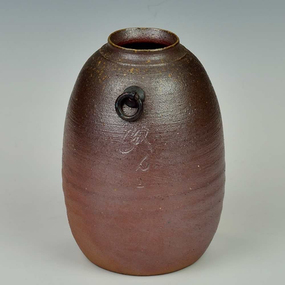 掛花入。竹をイメージした商品です。壁掛け用の金具がついていますので、壁にかけてもご使用していただけます。安定感があります。木村微風によってろくろで作られ、作品の底には作家のサインが入っています。登り窯で赤松の割り木だけを使い、約2週間焼き締められました。釉薬は全く使われておらず、土と炎から生み出される自然の色をお楽しみください。花器: 直径8cm, 高さ約12cm, 壁掛け用の金具がついています。(写真参照)備前焼は一点一点手作りのため、焼けや風合いが異なることが多少ございます。どうぞご了承ください。