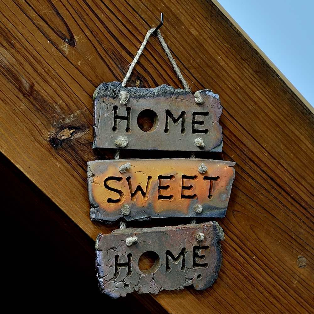 Home Sweet Home。木村庸祐によって手びねりで作られ、作品の底には作家のサインが入っています。登り窯で赤松の割り木だけを使い、約2週間焼き締められました。釉薬は全く使われておらず、土と炎から生み出される自然の色をお楽しみください。サイズ: 幅約18cm, 奥行約15cm, 高さ約1cm, 備前焼は一点一点手作りのため、焼けや風合いが異なることが多少ございます。どうぞご了承ください。