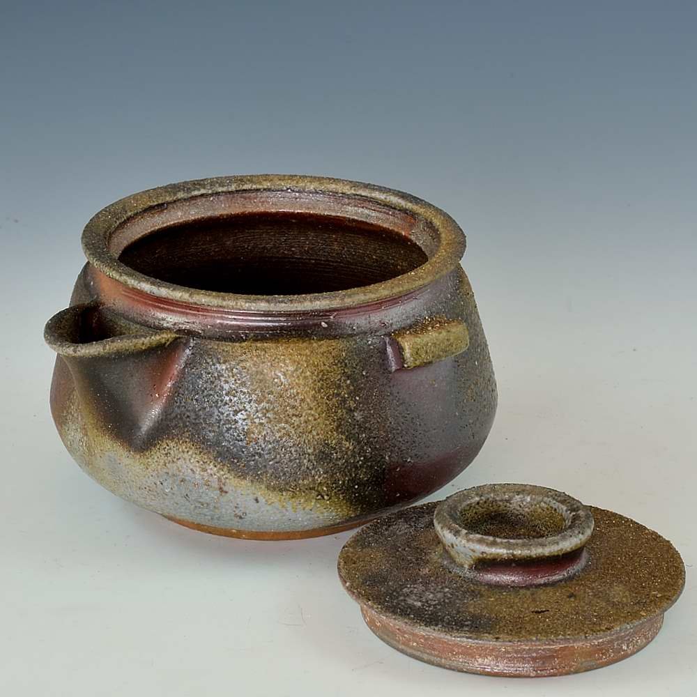 宝瓶(MW)。木村庸祐によってろくろで作られ、作品の底には作家のサインが入っています。登り窯で赤松の割り木だけを使い、約2週間焼き締められました。釉薬は全く使われておらず、土と炎から生み出される自然の色をお楽しみください。ポット: 直径10cm, 高さ約6cm, 約180ml 程入ります。備前焼は一点一点手作りのため、焼けや風合いが異なることが多少ございます。どうぞご了承ください。