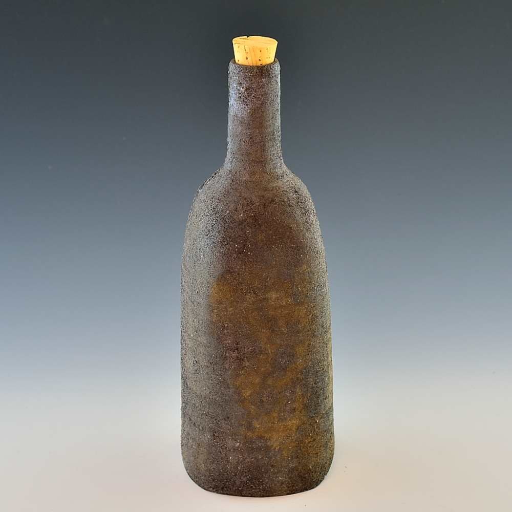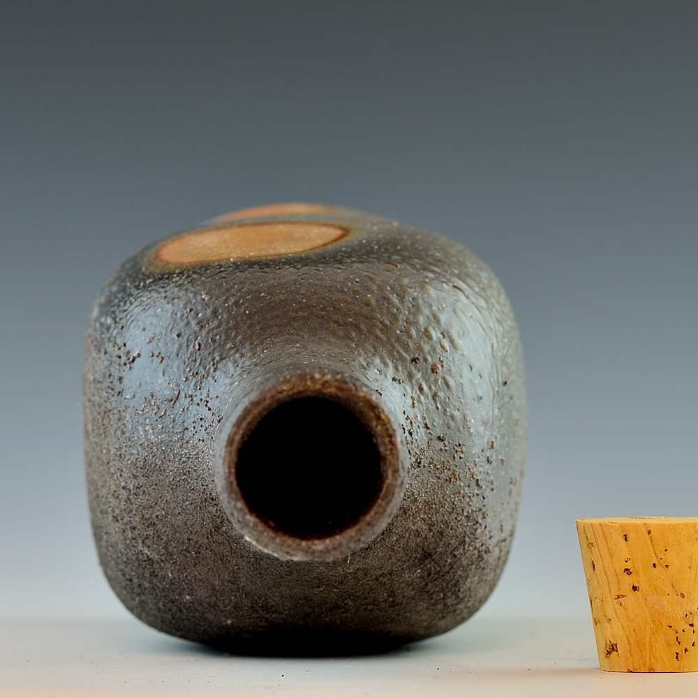 ころがしボトル(大)。お水、お酒、焼酎、ワインなどを入れて自由にお使いいただけるボトルです。木村微風によってろくろで作られ、作品の底には作家のサインが入っています。登り窯で赤松の割り木だけを使い、約2週間焼き締められました。釉薬は全く使われておらず、土と炎から生み出される自然の色をお楽しみください。 ボトル: 直径9cm, 高さ25cm, 約650ml 程入ります。 コルクがついています。(画像には示されていません) 電子レンジ・食器洗浄機対応 備前焼は一点一点手作りのため、焼けや風合いが異なることが多少ございます。どうぞご了承ください。