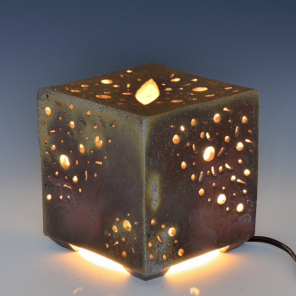 ランプー花火(小)。木村庸祐によって手びねりで作られ、作品の底には作家のサインが入っています。登り窯で赤松の割り木だけを使い、約2週間焼き締められました。釉薬は全く使われておらず、土と炎から生み出される自然の色をお楽しみください。ランプ: 幅約13cm, 奥行約13cm, 高さ約14cm, 備前焼は一点一点手作りのため、焼けや風合いが異なることが多少ございます。どうぞご了承ください。