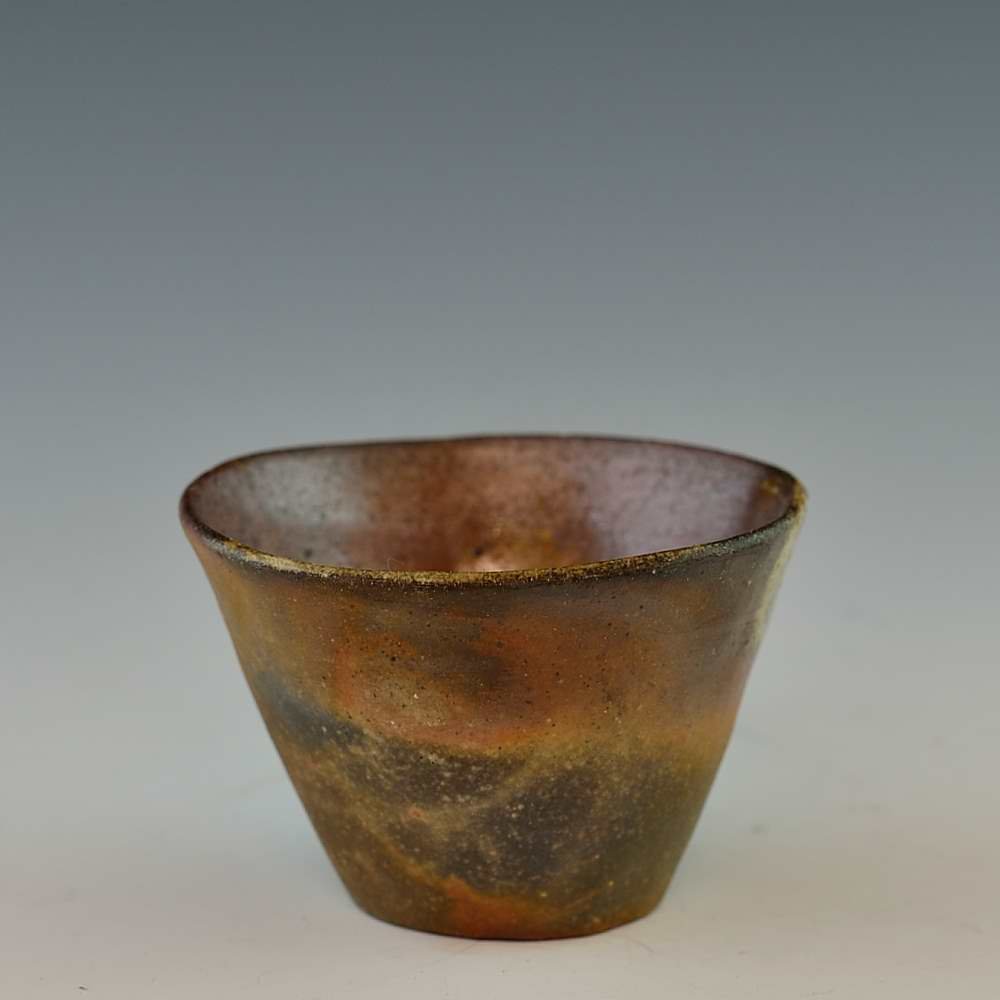 朝顔鉢(小)。木村微風によって手びねりで作られ、作品の底には作家のサインが入っています。登り窯で赤松の割り木だけを使い、約2週間焼き締められました。釉薬は全く使われておらず、土と炎から生み出される自然の色をお楽しみください。 鉢: 直径7cm, 高さ4cm, 電子レンジ・食器洗浄機対応 備前焼は一点一点手作りのため、焼けや風合いが異なることが多少ございます。どうぞご了承ください。