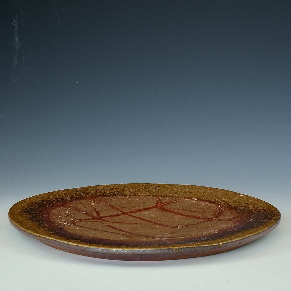 オーガニック丸皿(中)。木村庸祐によって手びねりで作られ、作品の底には作家のサインが入っています。登り窯で赤松の割り木だけを使い、約2週間焼き締められました。釉薬は全く使われておらず、土と炎から生み出される自然の色をお楽しみください。皿: 直径23cm, 高さ約2cm, 電子レンジ・食器洗浄機対応備前焼は一点一点手作りのため、焼けや風合いが異なることが多少ございます。どうぞご了承ください。