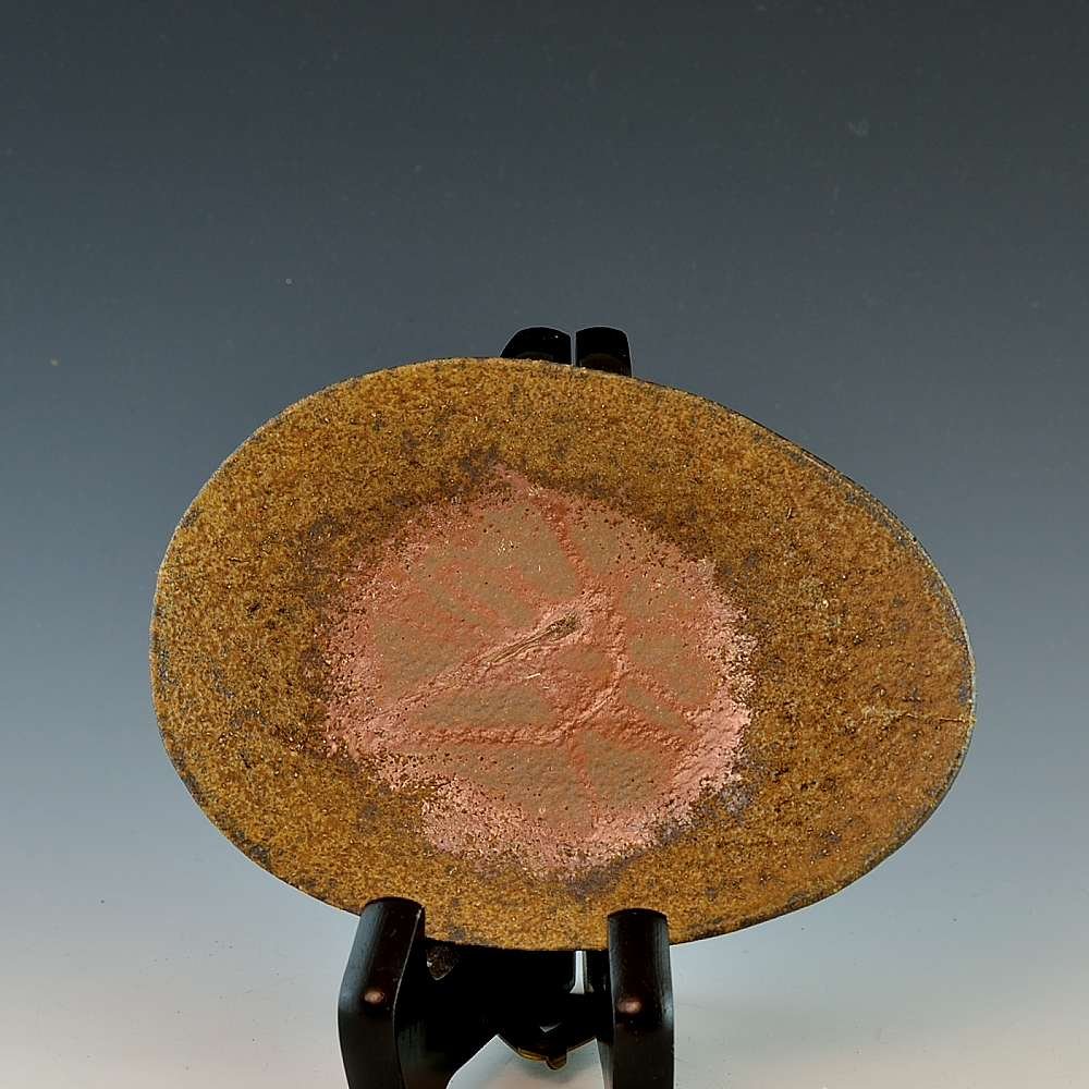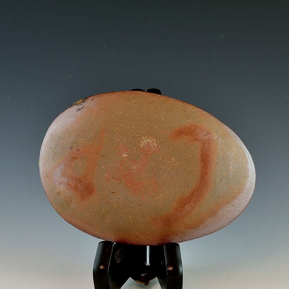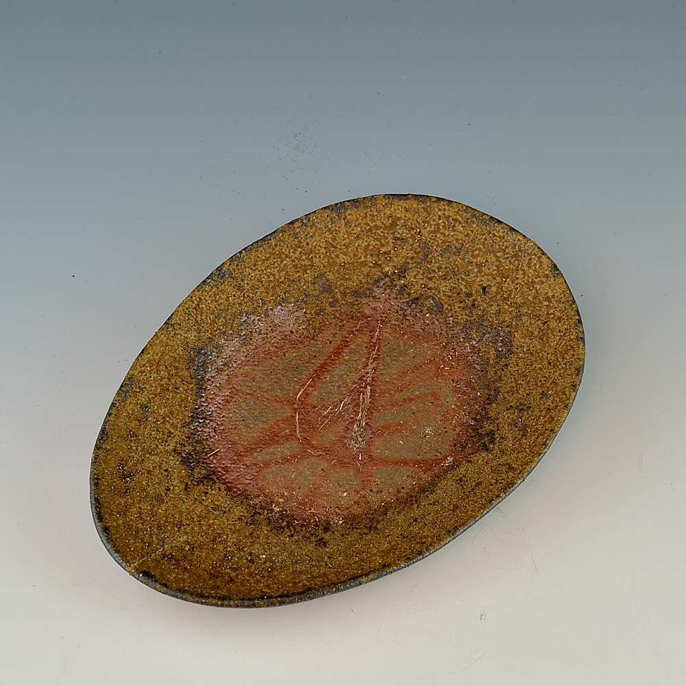 楕円皿(小)。木村微風によって手びねりで作られ、作品の底には作家のサインが入っています。登り窯で赤松の割り木だけを使い、約2週間焼き締められました。釉薬は全く使われておらず、土と炎から生み出される自然の色をお楽しみください。 皿: 幅約14cm, 奥行約10cm, 高さ約2cm, 電子レンジ・食器洗浄機対応 備前焼は一点一点手作りのため、焼けや風合いが異なることが多少ございます。どうぞご了承ください。
