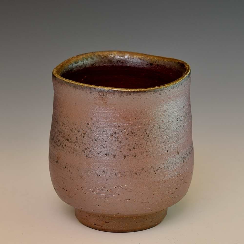 胡麻湯呑(大)ープレミアム。木村微風によってろくろで作られ、作品の底には作家のサインが入っています。登り窯で赤松の割り木だけを使い、約2週間焼き締められました。釉薬は全く使われておらず、土と炎から生み出される自然の色をお楽しみください。 湯呑: 直径8cm, 高さ9cm, 電子レンジ・食器洗浄機対応 備前焼は一点一点手作りのため、焼けや風合いが異なることが多少ございます。どうぞご了承ください。