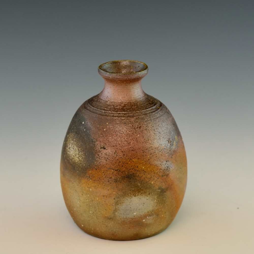 徳利(小)。木村微風によってろくろで作られ、作品の底には作家のサインが入っています。登り窯で赤松の割り木だけを使い、約2週間焼き締められました。釉薬は全く使われておらず、土と炎から生み出される自然の色をお楽しみください。 徳利: 直径7cm, 高さ10cm, 約180ml 程入ります。 電子レンジ・食器洗浄機対応 備前焼は一点一点手作りのため、焼けや風合いが異なることが多少ございます。どうぞご了承ください。